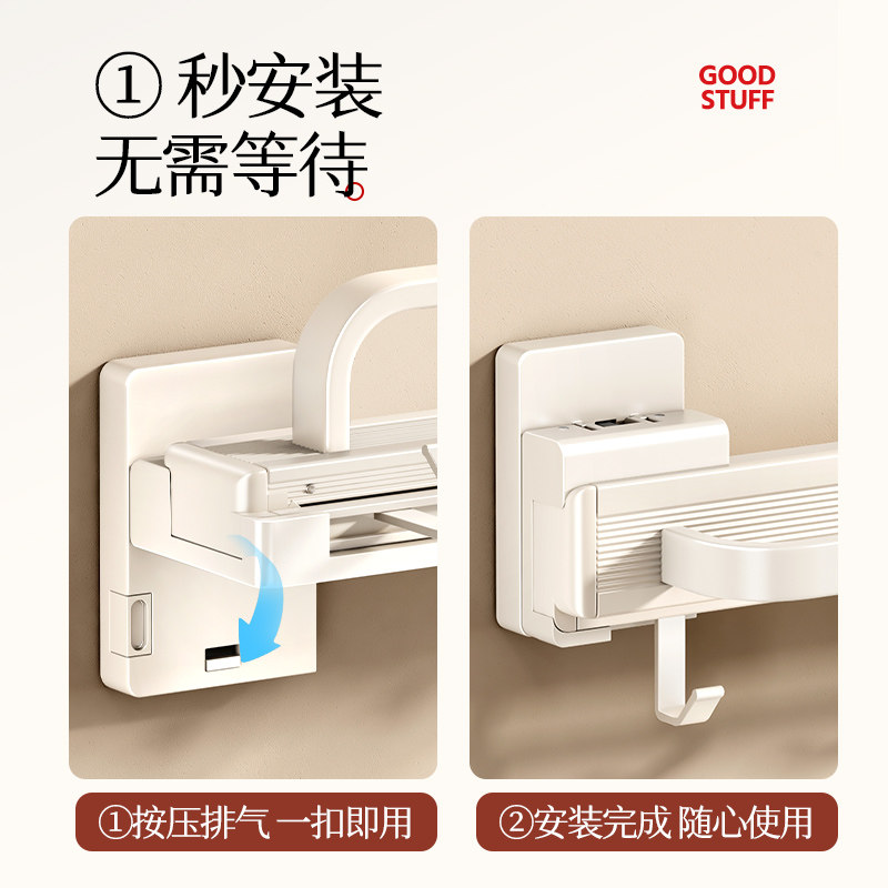 毛巾架卫生间免打孔毛巾置物架浴室吸盘挂架浴巾架子毛巾置物挂杆