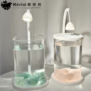 曼尾纱斗鱼专用鱼缸小型客厅2025新款 玻璃造景小夜灯创意摆件观赏