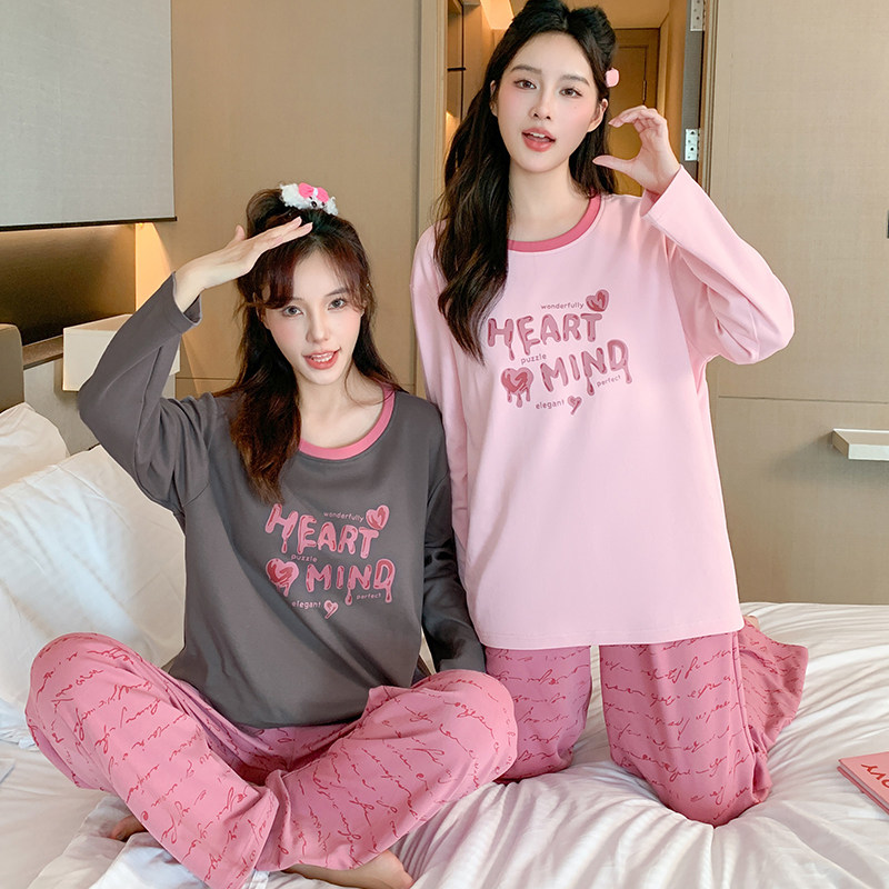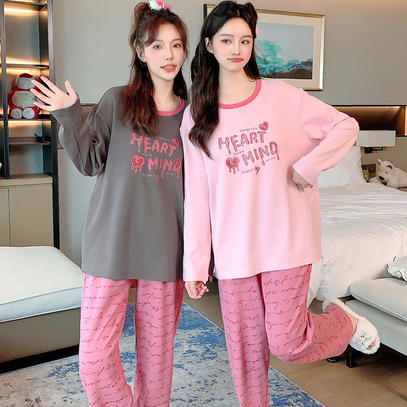 家居服套装 可爱少女高级感闺蜜装 纯棉长袖 浪莎带胸垫睡衣女春秋季