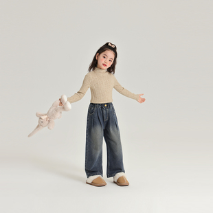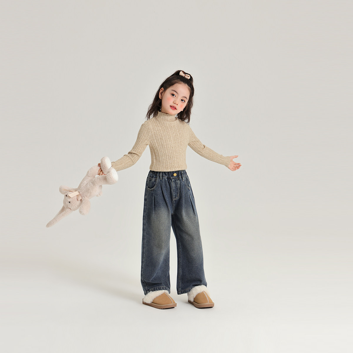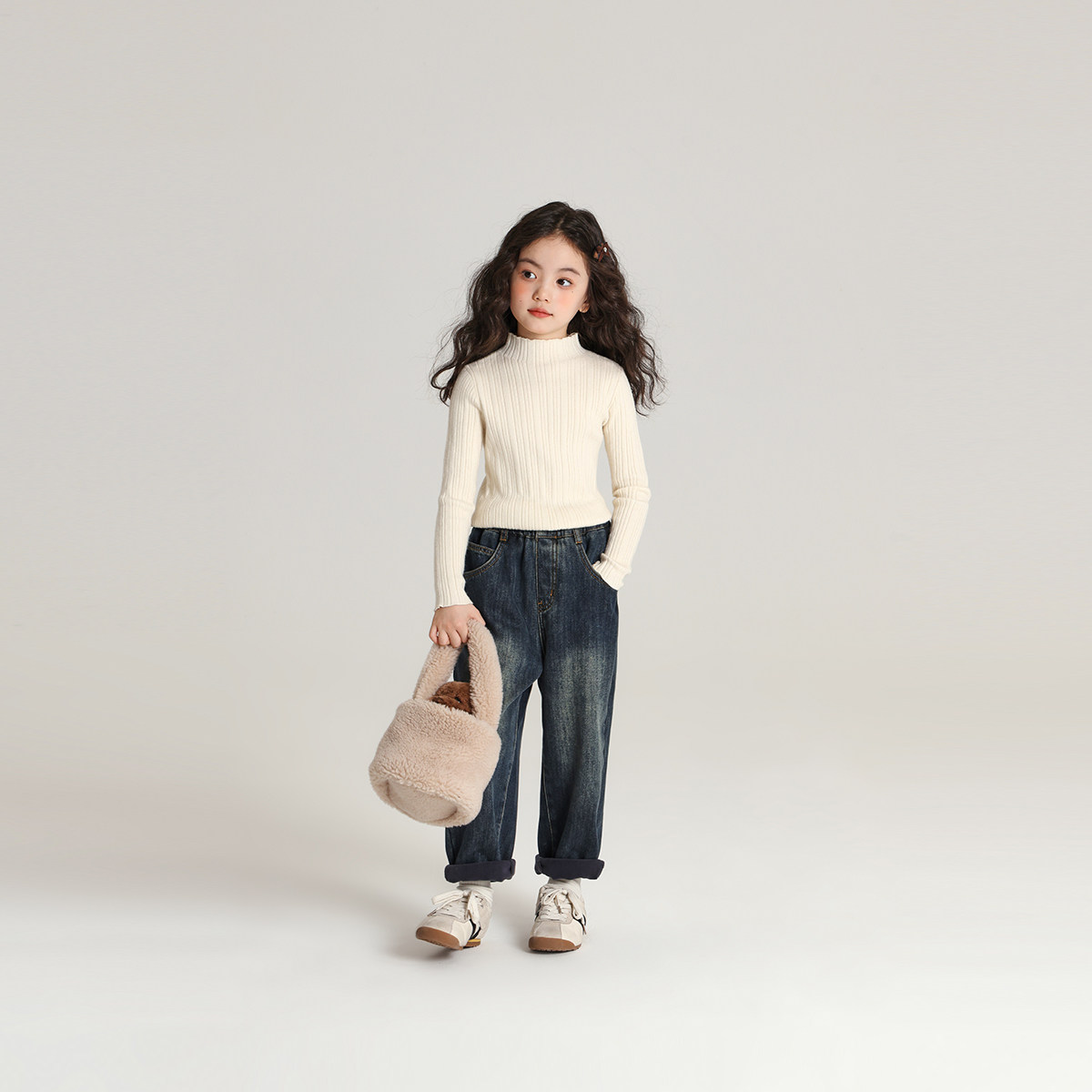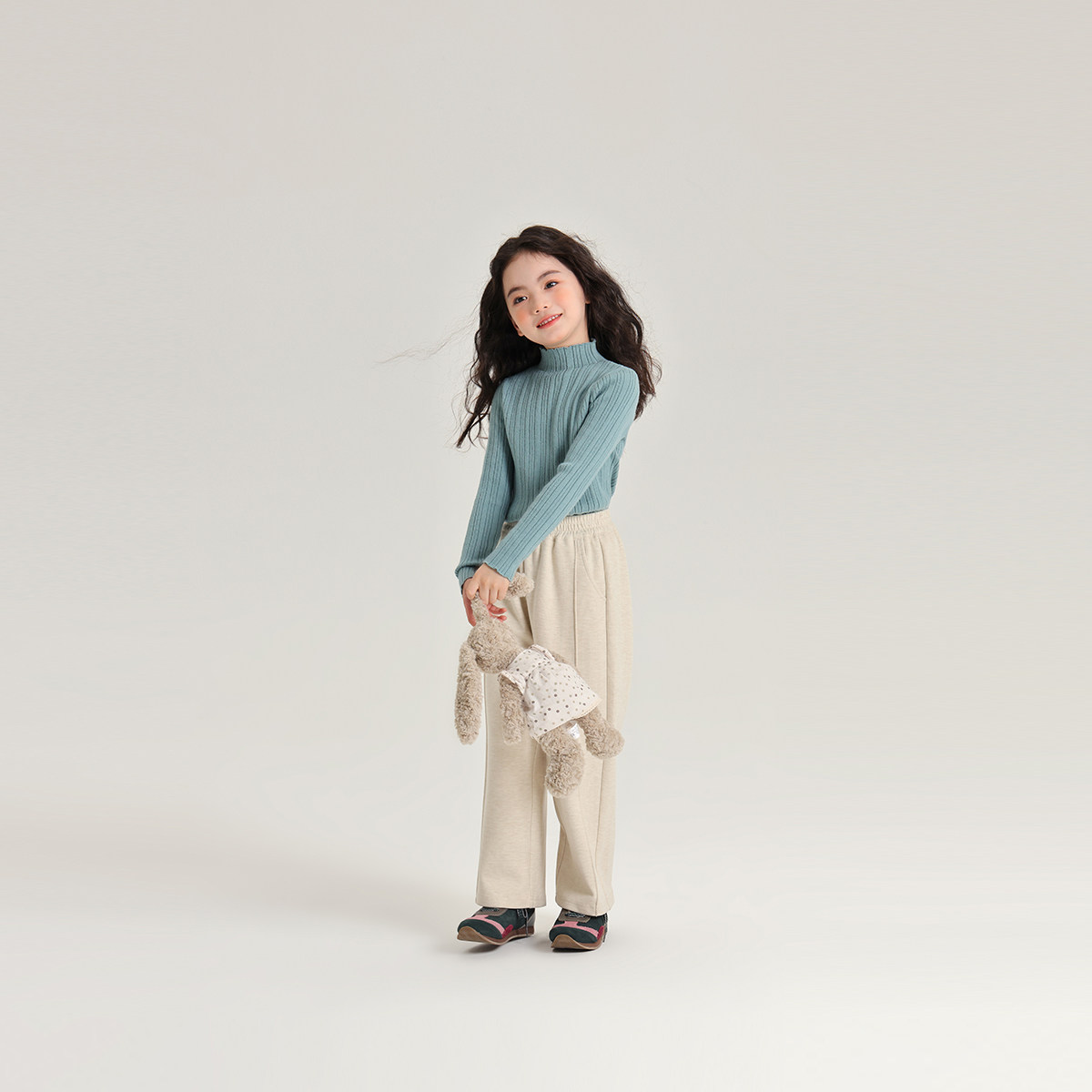 儿童纯色简约打底长袖 布丁哈鲁童装 2025春秋季 女童百搭针织衫 秋装