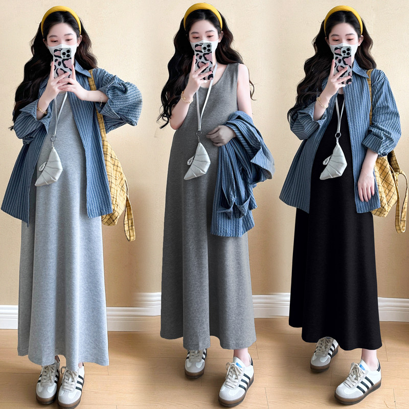 2873 上衣两件套装 秋冬穿搭女新款 宽松复古背心马甲学院风衬衫