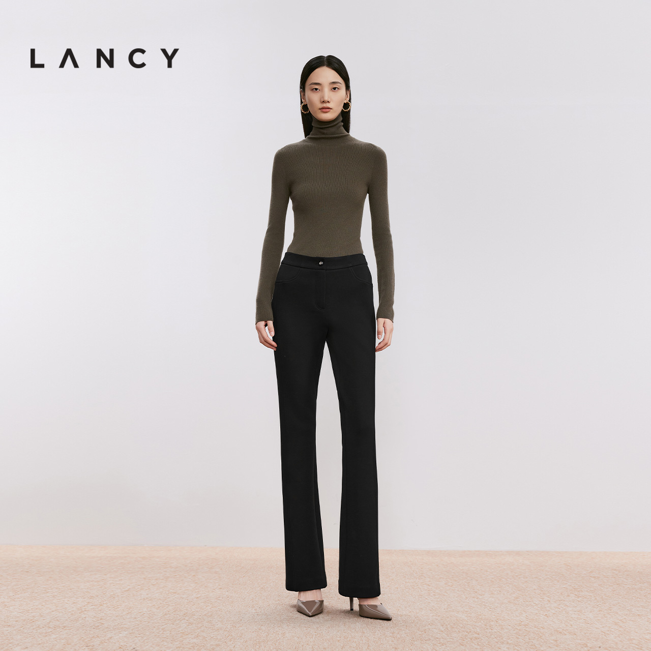 通勤喇叭裤 LANCY 子黑色不褪色显瘦时尚 高腰微喇裤 女 朗姿24冬新款