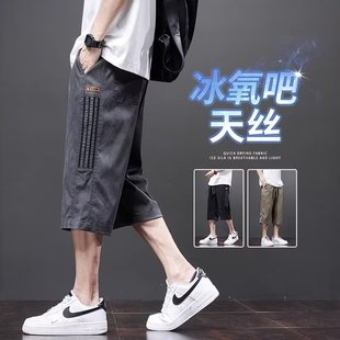 薄款 速干透气夏季 宽松工装 马裤 七分 天丝休闲短裤 夏天冰丝大码 男士