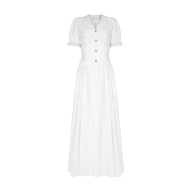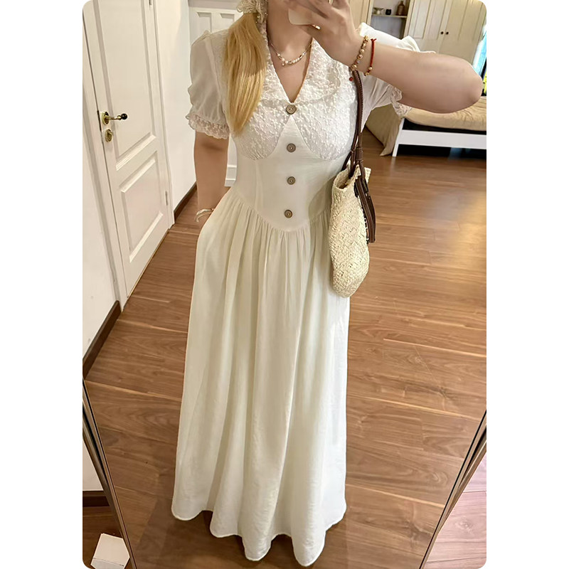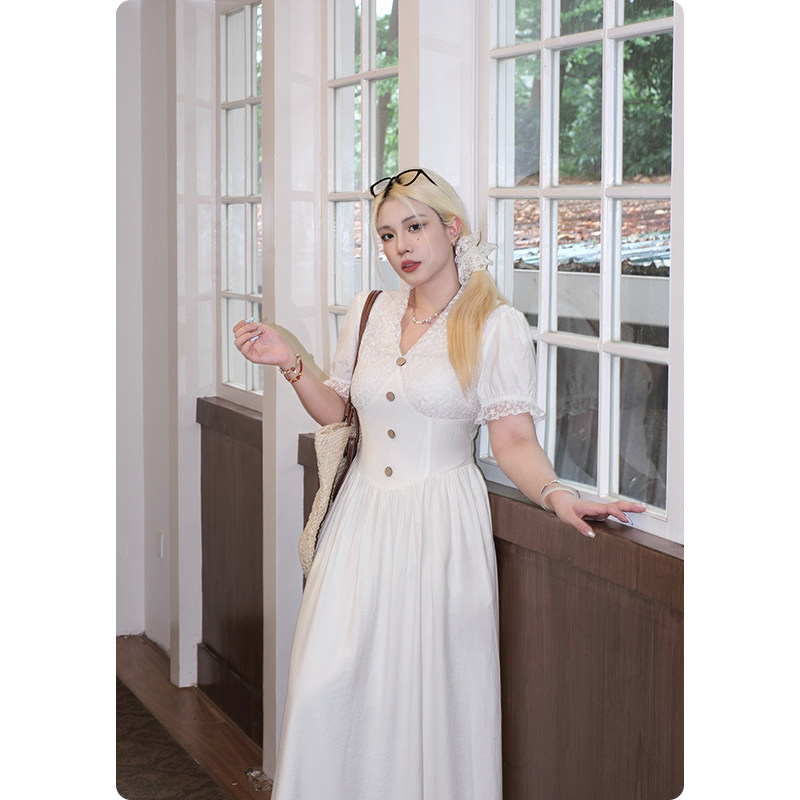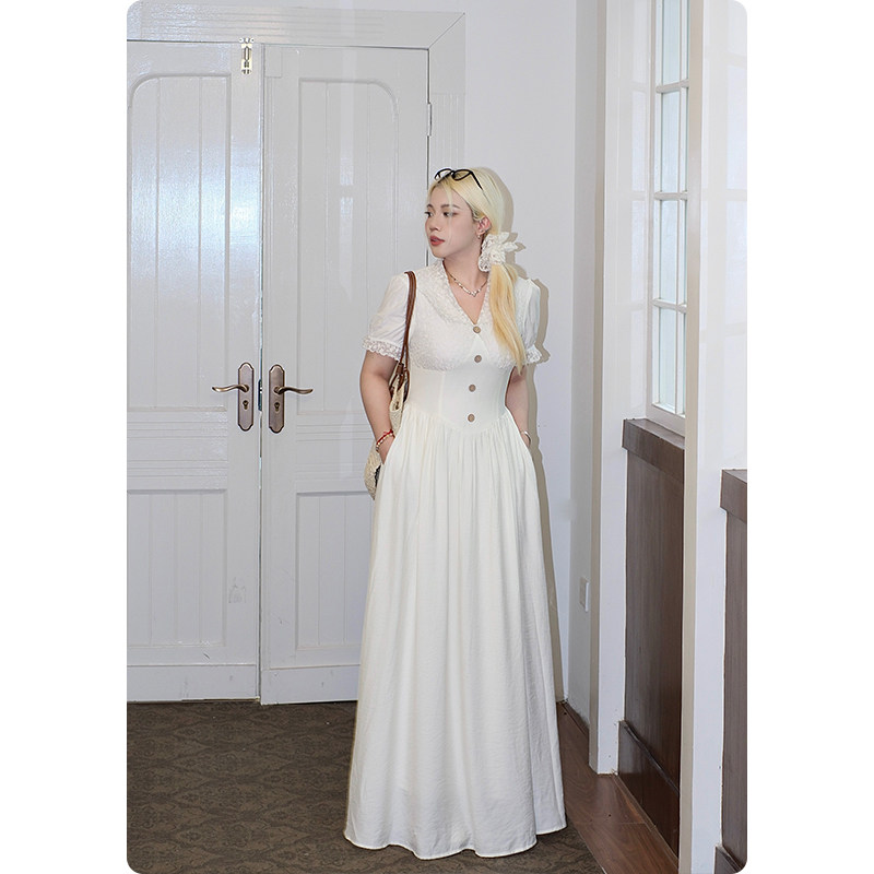 连衣裙女夏季 法式 胖mm高级感v领收腰气质长裙子 匿名告白 糯米子