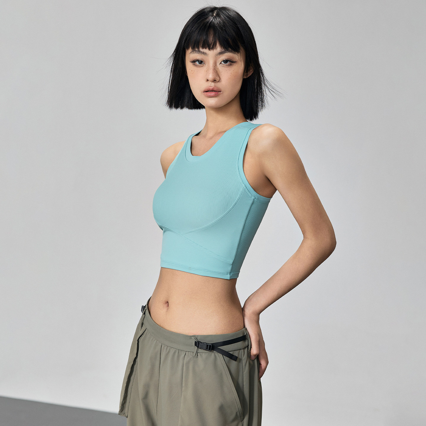Mitaogirl固定胸垫工字型背心女紧身收腰健身服户外运动瑜伽上衣