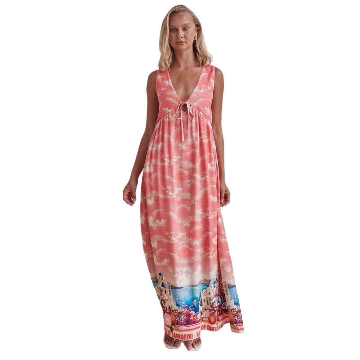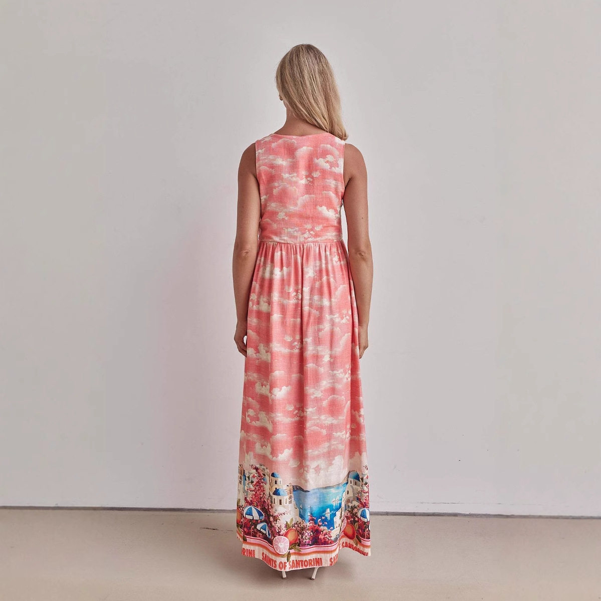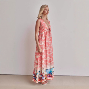 sleeveless neck Women dress casual long 长裙连衣裙 printed