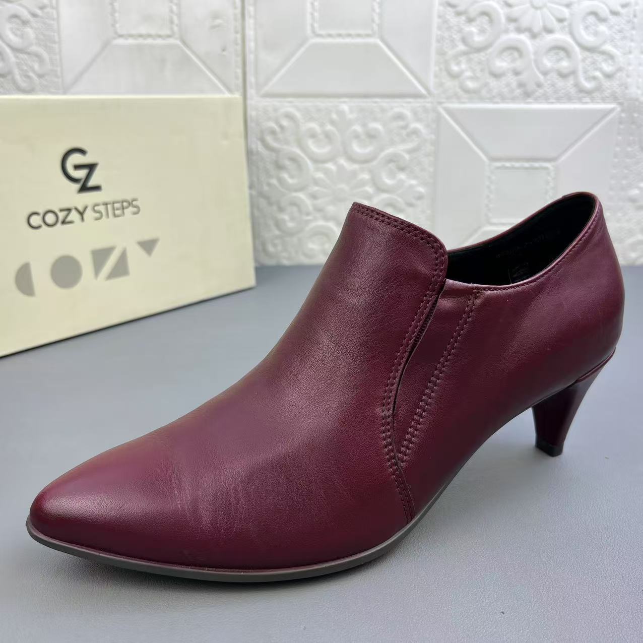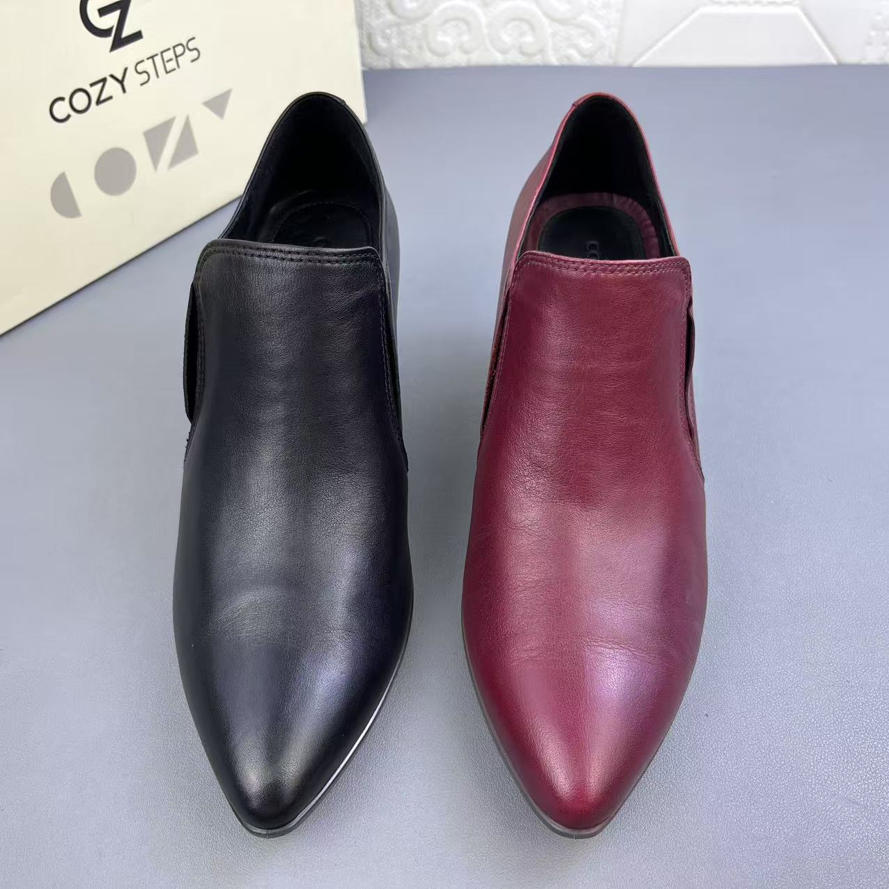 STEPS可至正品 尖头单鞋 处理头层牛皮粗跟时装 真皮新款 清 女鞋 COZY