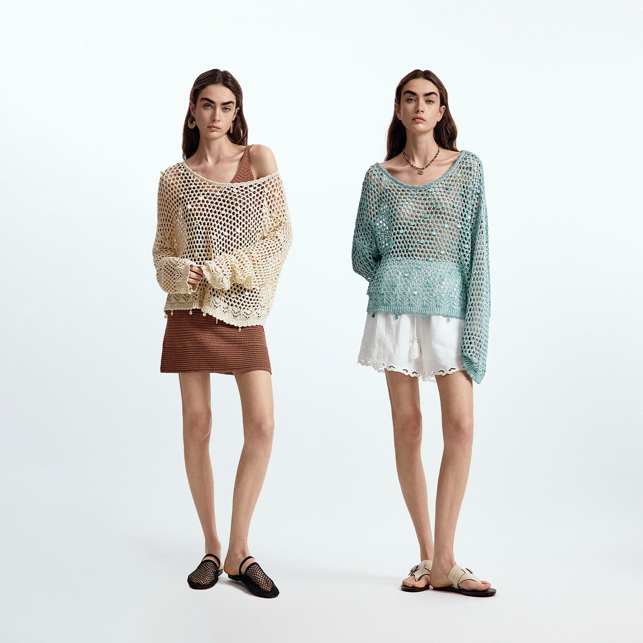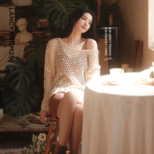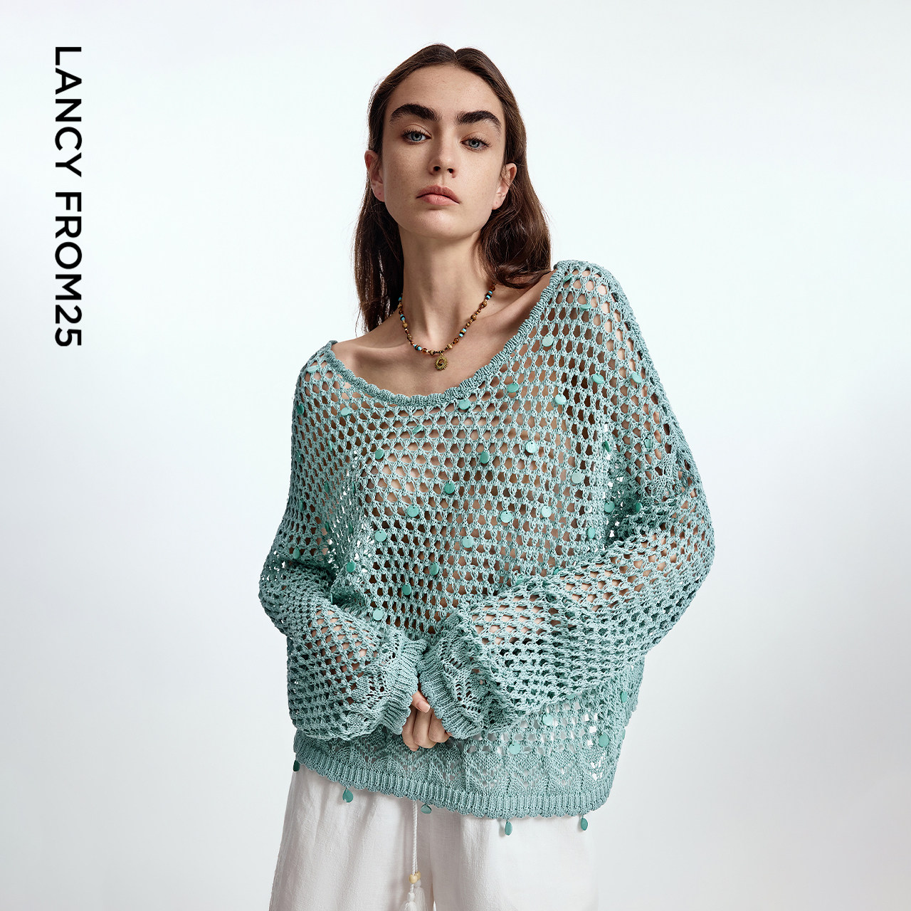 漾25系列 2025年夏季 王楚然同款 度假风罩衫 新款 朗姿镂空针织衫