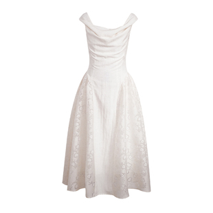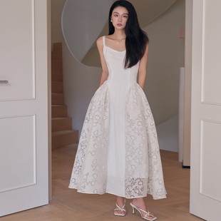 签儿2025年春秋白月光领证小白裙子复古小众荡领蕾丝长袖 连衣裙女