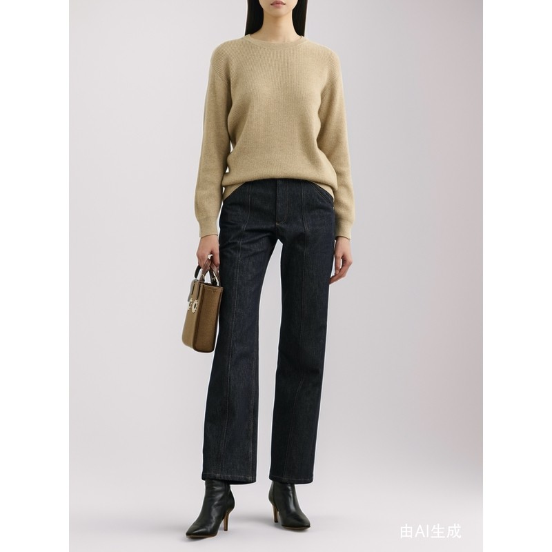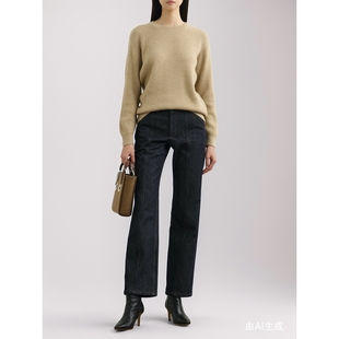 宽松显瘦直筒裤 猫猫家加长女裤 秋冬加绒加厚卡其色高腰弯刀牛仔裤