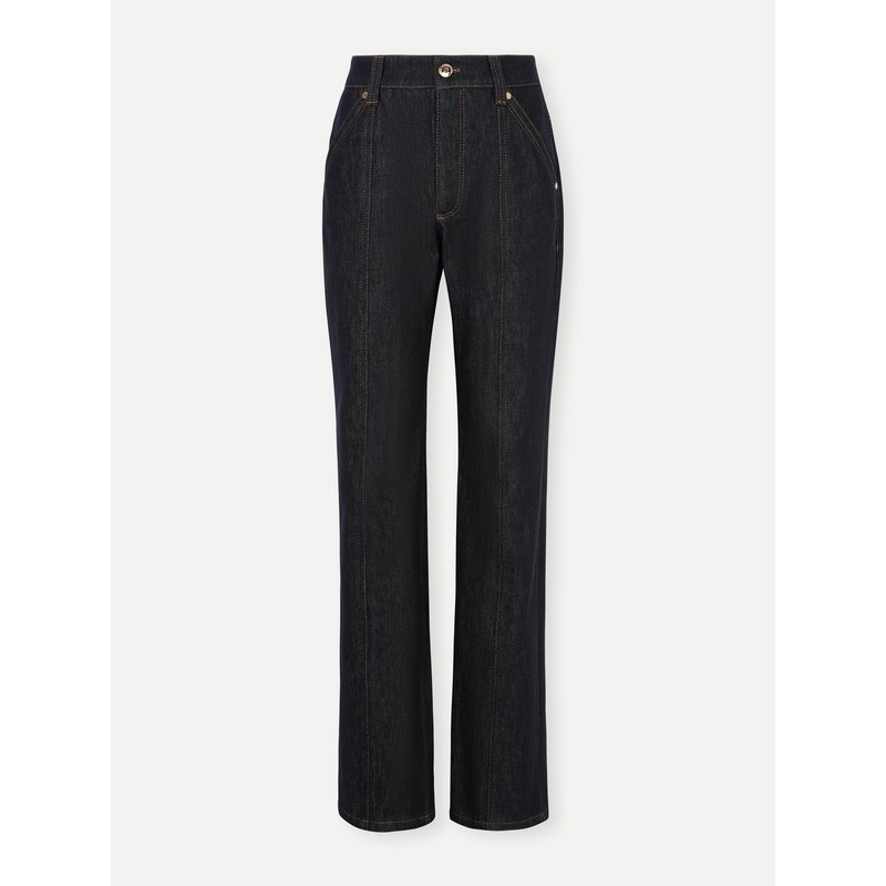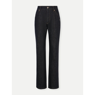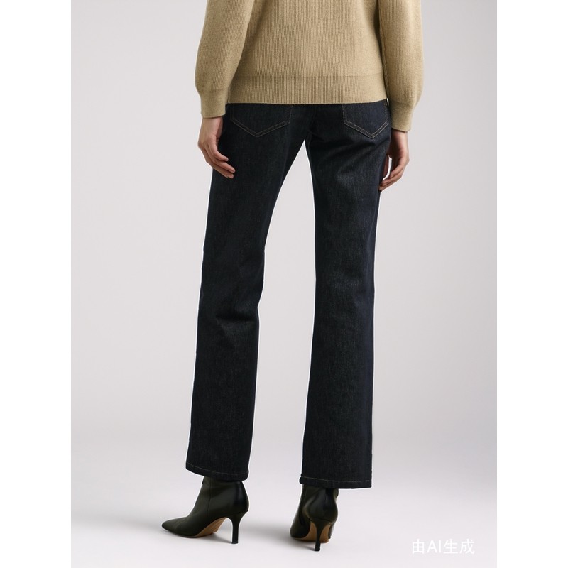女冬小个子高腰加绒加厚直筒裤 百家好黑色九分牛仔裤 House Basic