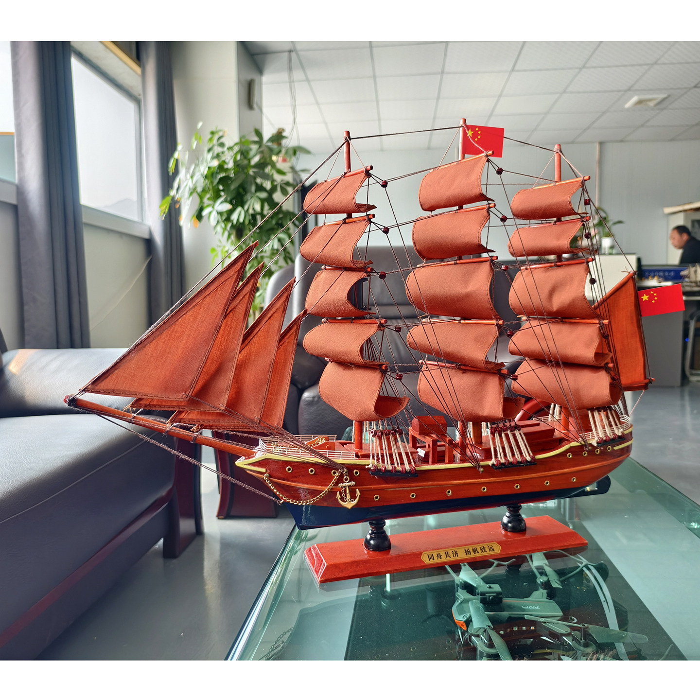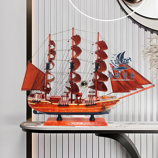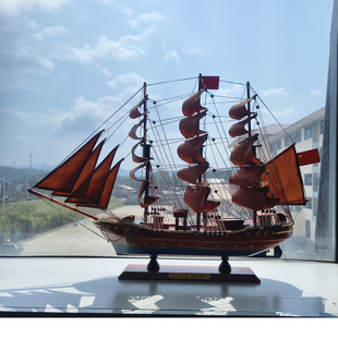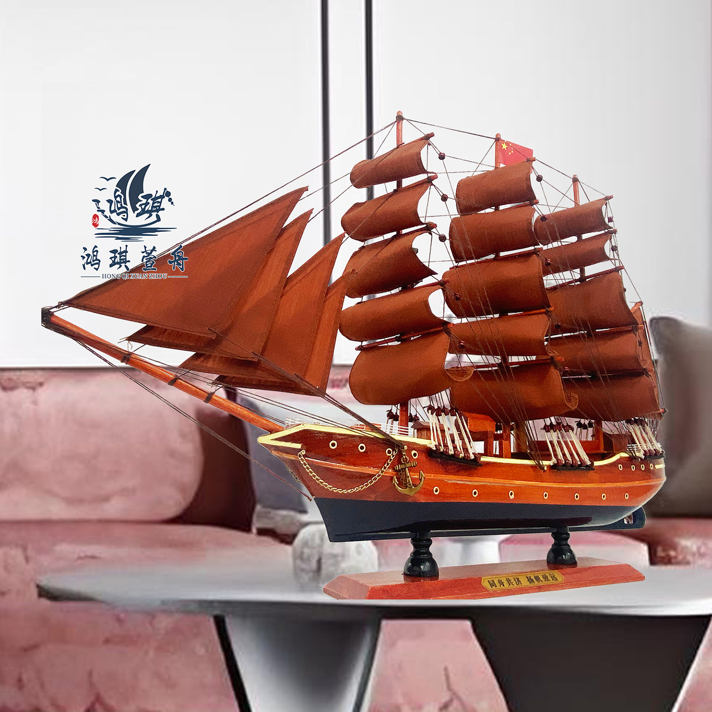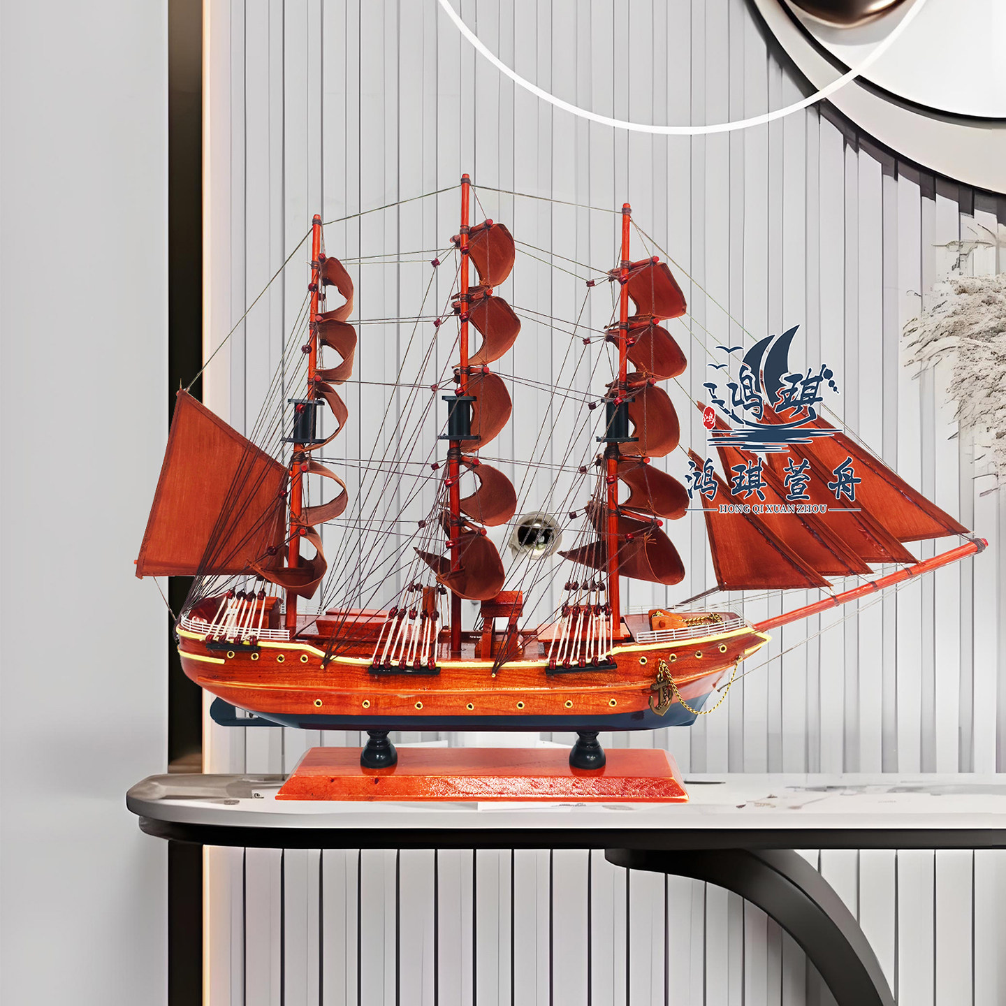 中式 饰摆件送礼 实木帆船模型成品精致一帆风顺木船模型工艺船装