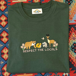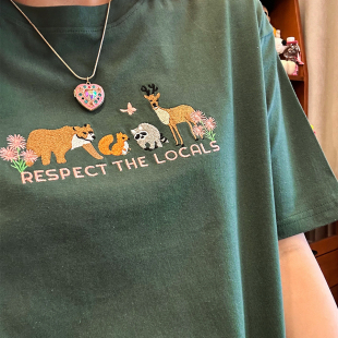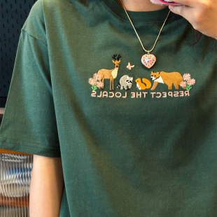 森林动物刺绣简约复古纯棉休闲百搭通勤宽松情侣圆领T恤短袖 上衣