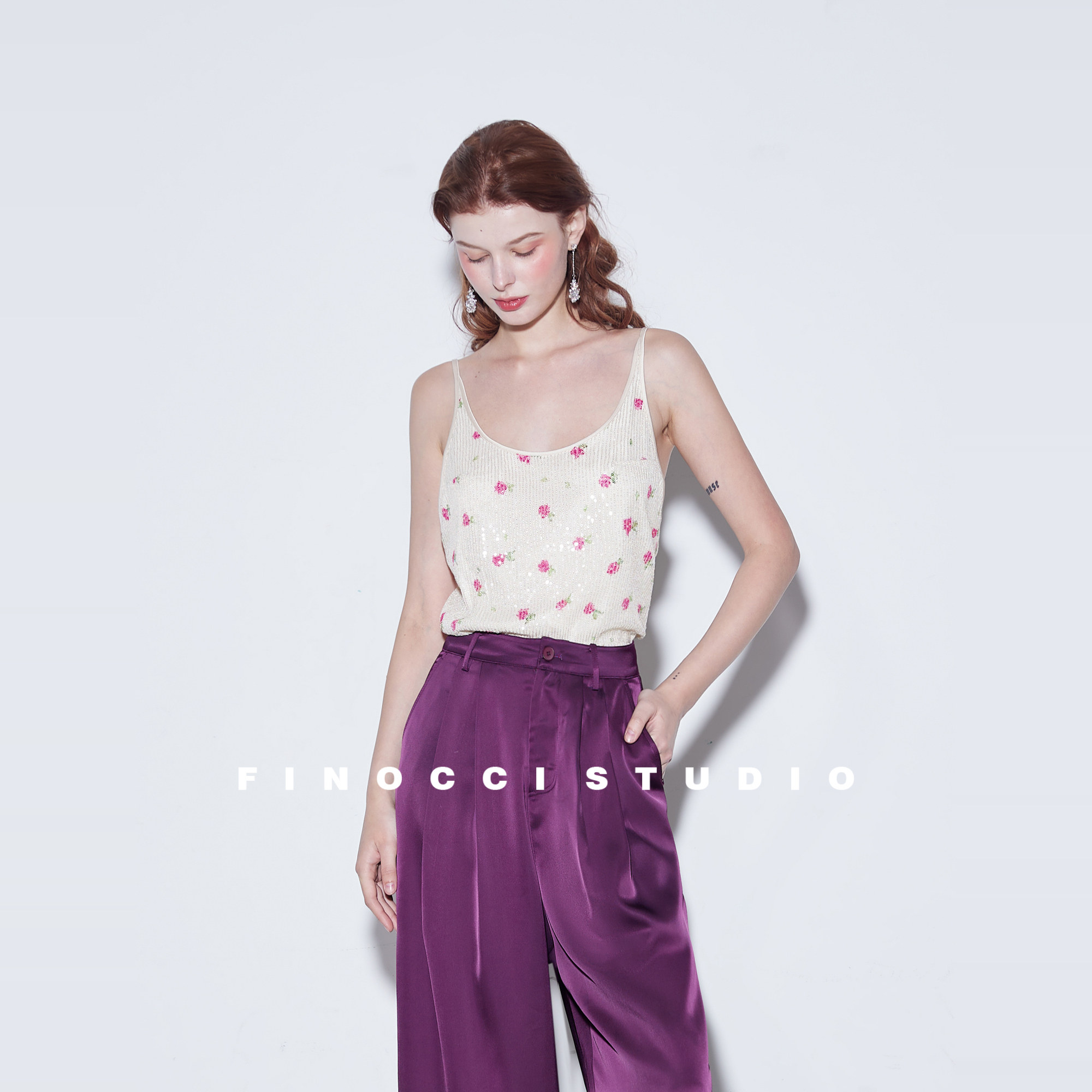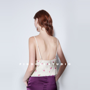 FINOCCI漂亮盛夏热辣亮片刺绣印花包边不扎松弛精致露背吊带上衣