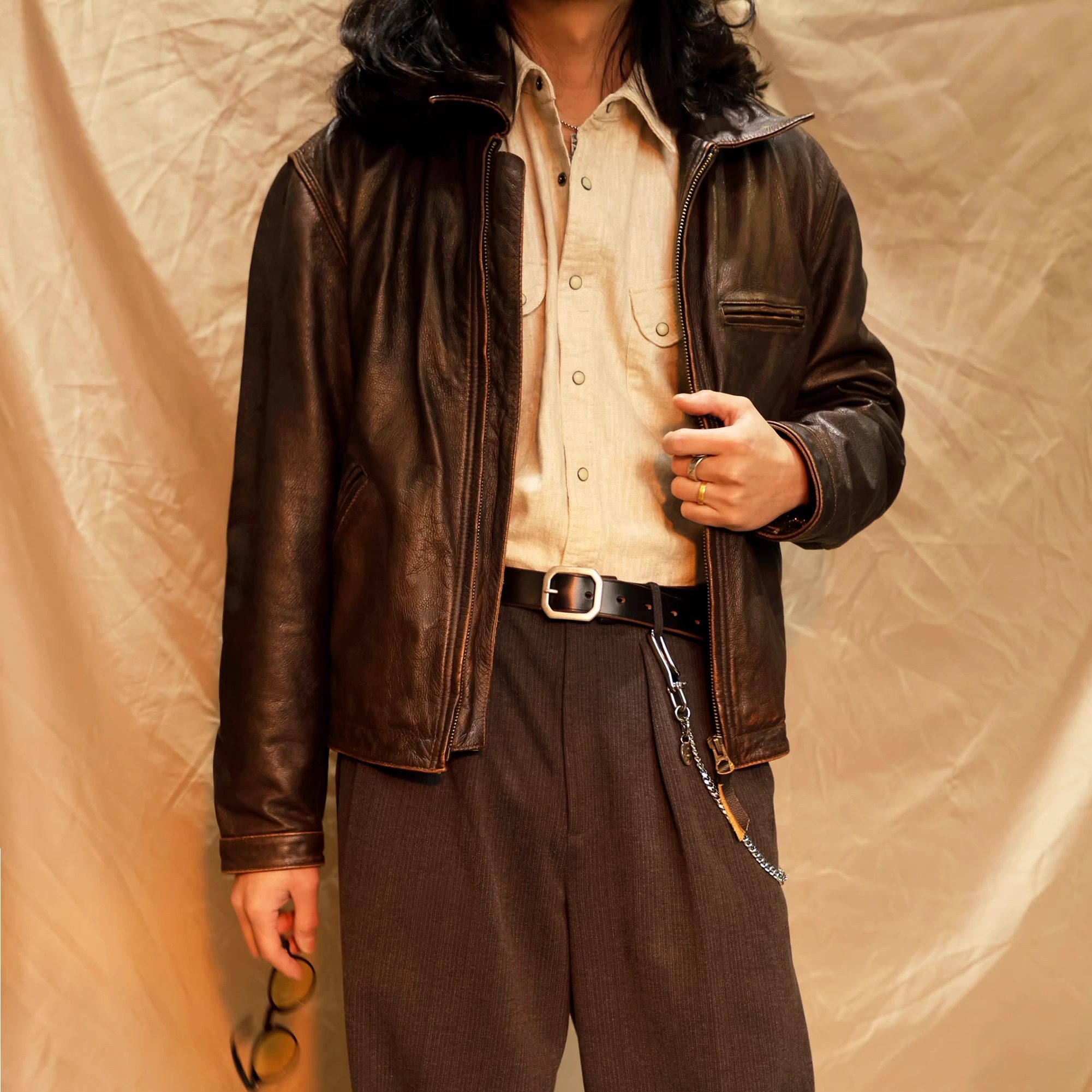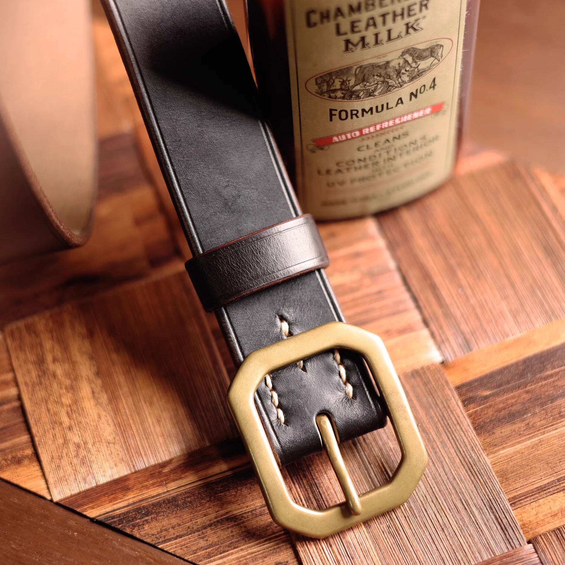 vintage美国霍尔文皮八角扣手工美式 牛仔小众皮带男腰带 复古工装