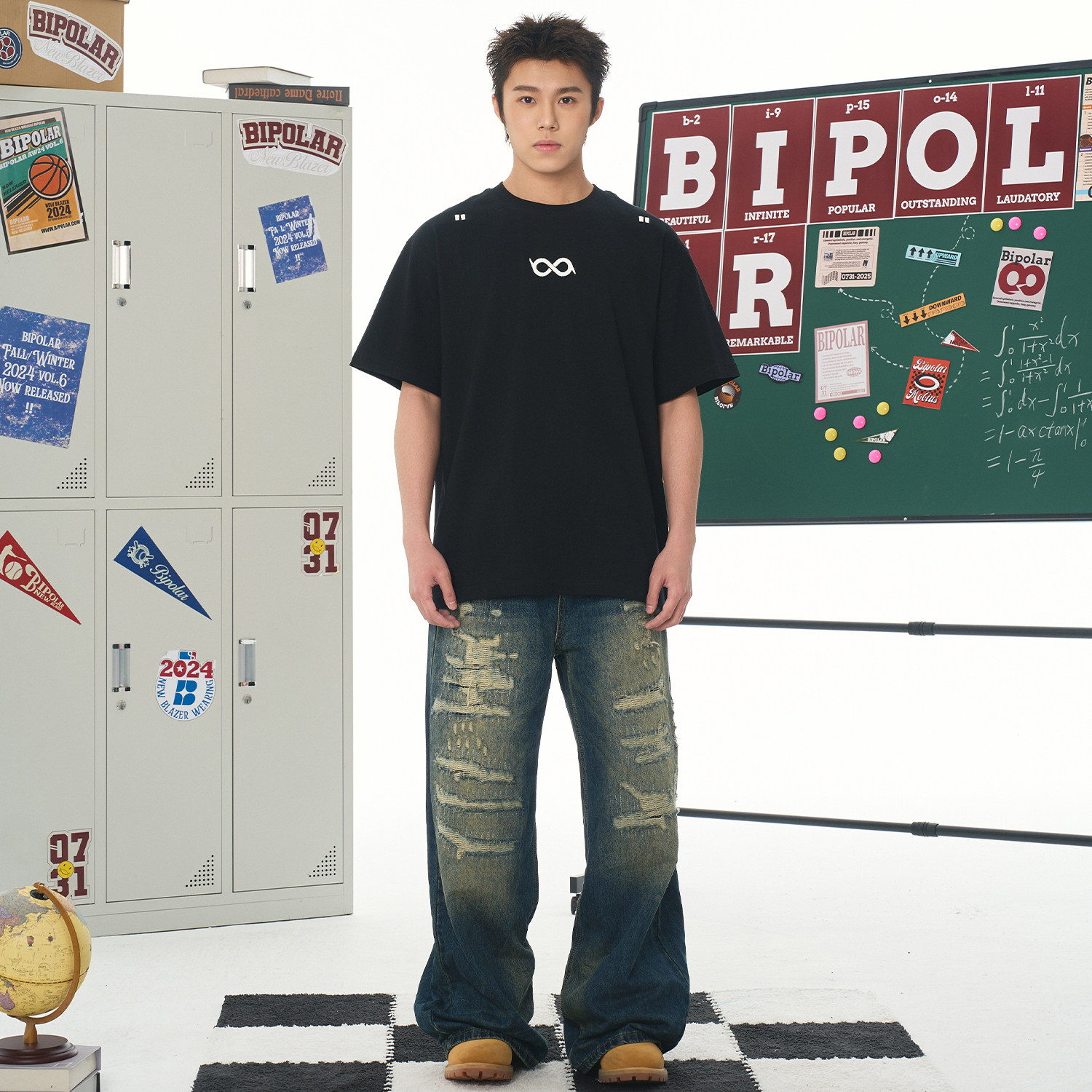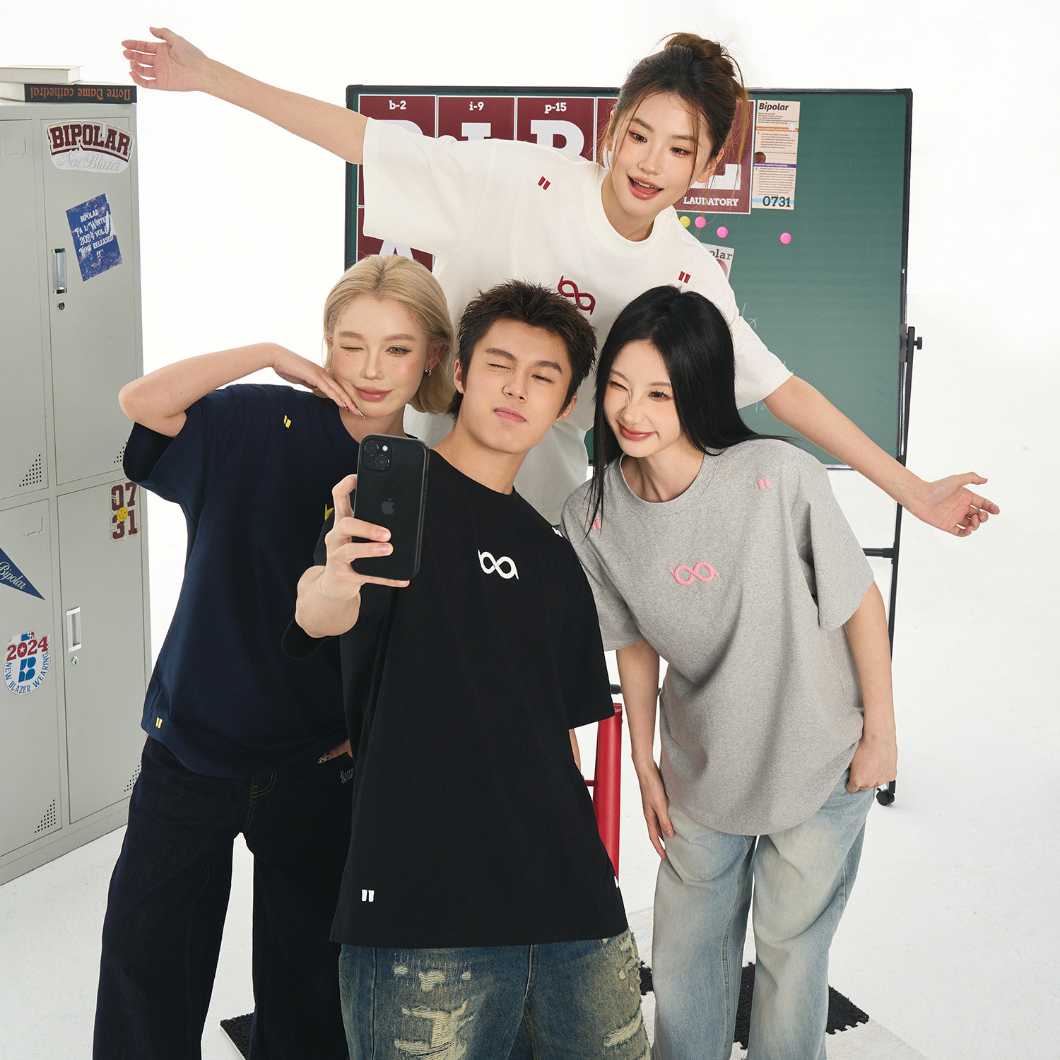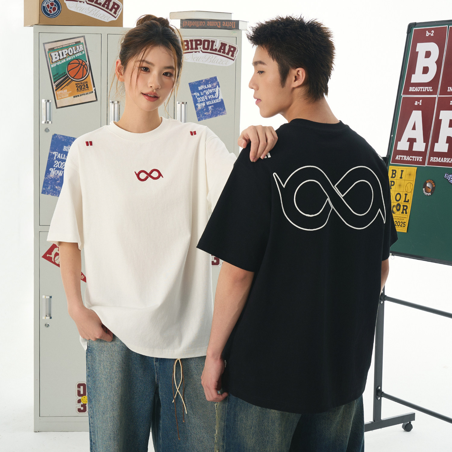 情侣款 上衣2025夏季 T恤重工刺绣休闲基础款 BIPOLAR绣花无限环短袖