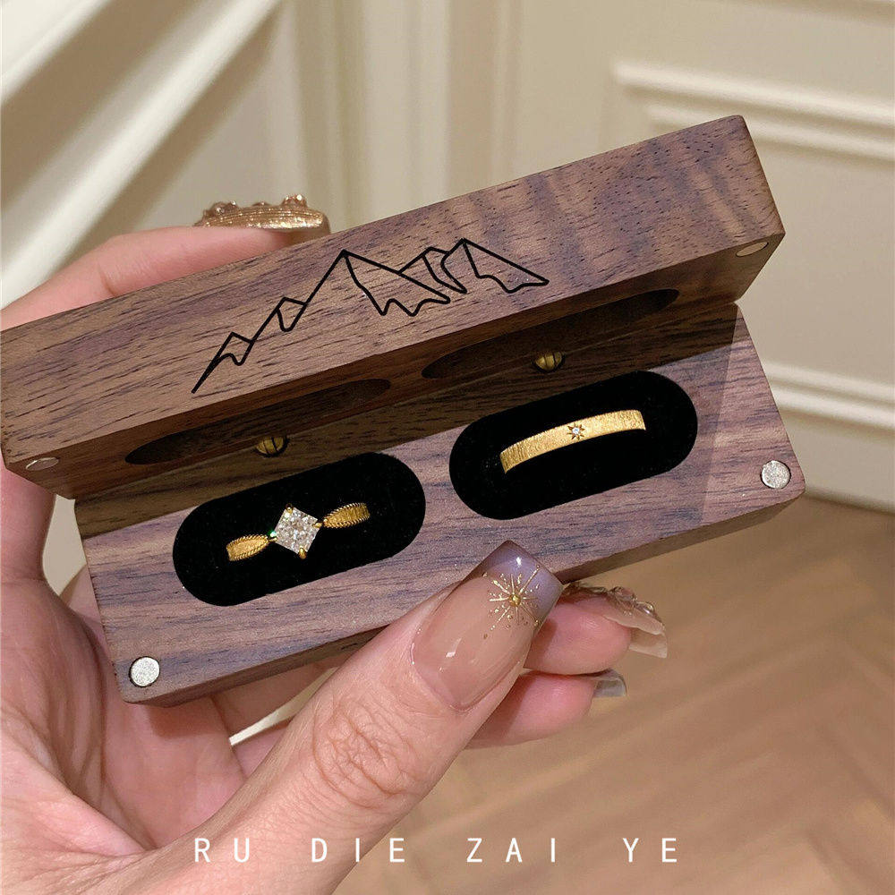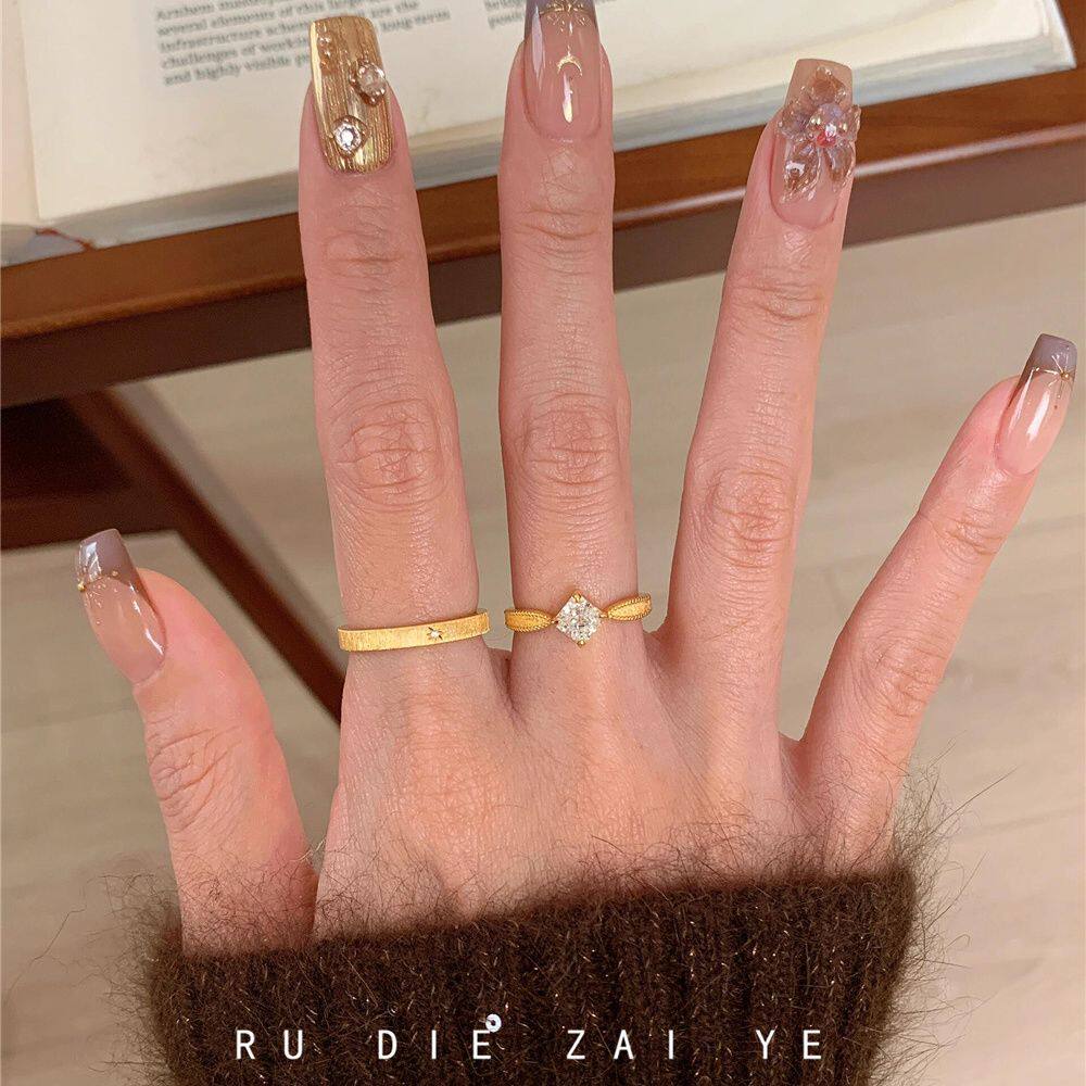 如蝶在野 中古vintage拉丝方糖锆石戒指女高级感轻奢小众开口戒