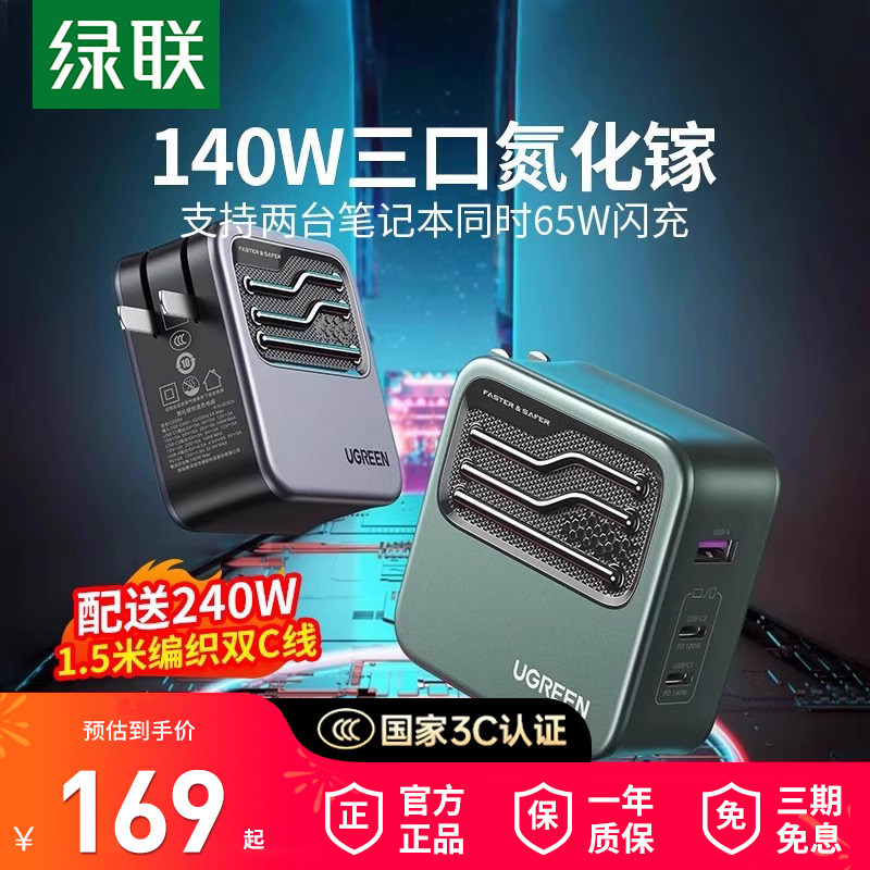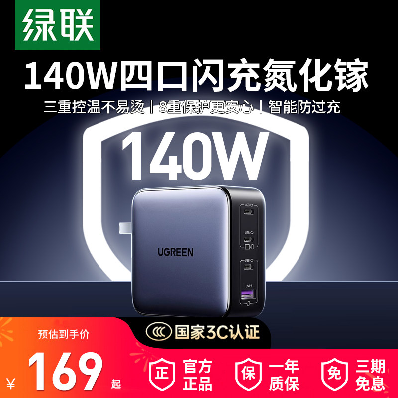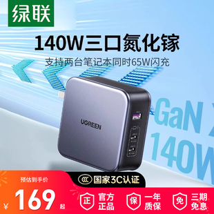 16笔记本电脑macbook快充插头100w桌面充电站 绿联140W氮化镓充电器头PD3.1多口适用iPhone17 国家3C认证
