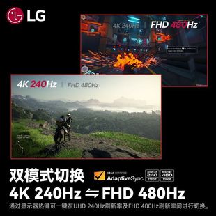 IPS六代电竞屏 27G850A双模显示器4K240HZ切换1K480HZ高刷Nano