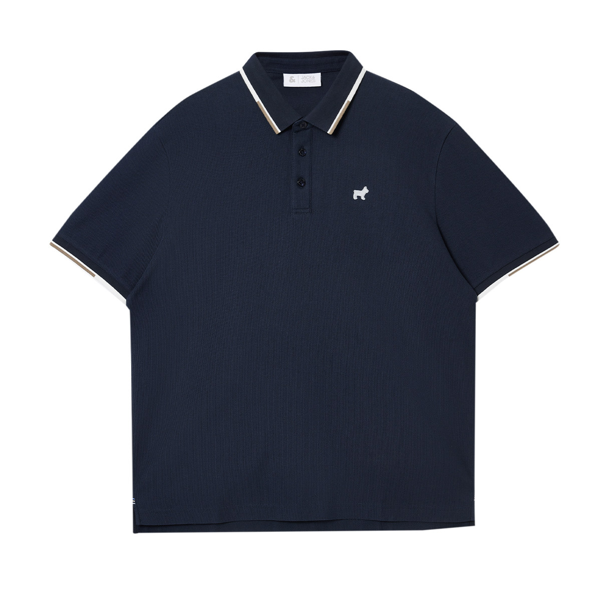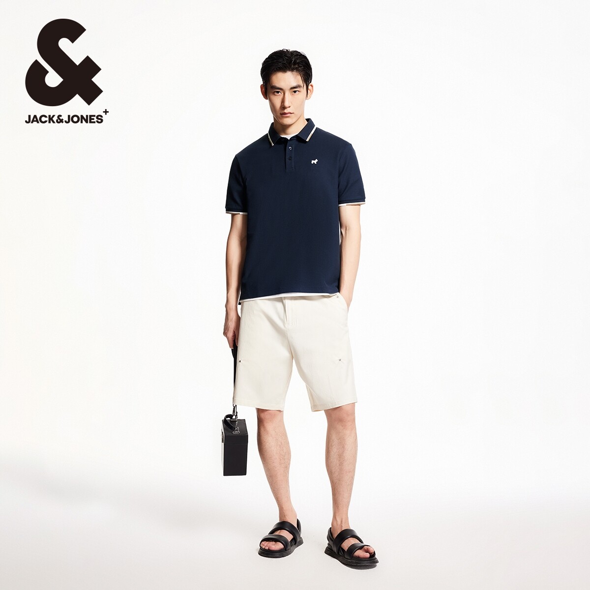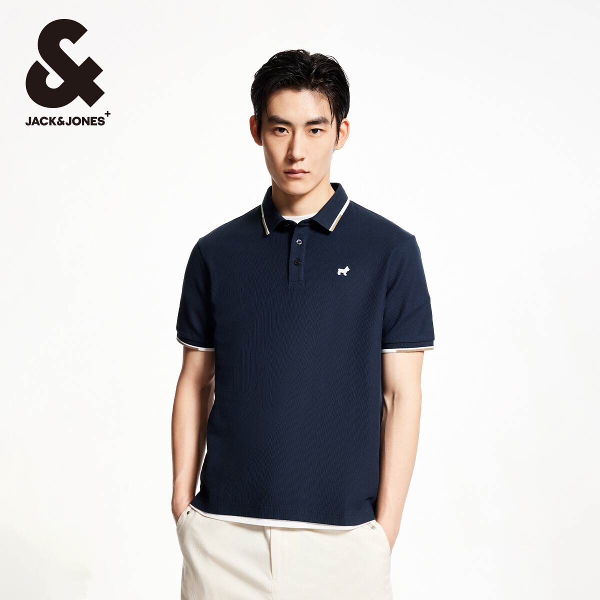 jq区绫致杰克琼斯春夏螺纹翻领底摆开衩胸前刺绣舒适polo衫 上衣