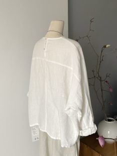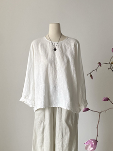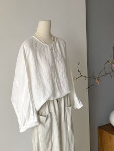 小众设计原创设计100%汉麻圆领宽松廓形衬衫 小个子简约休闲上衣