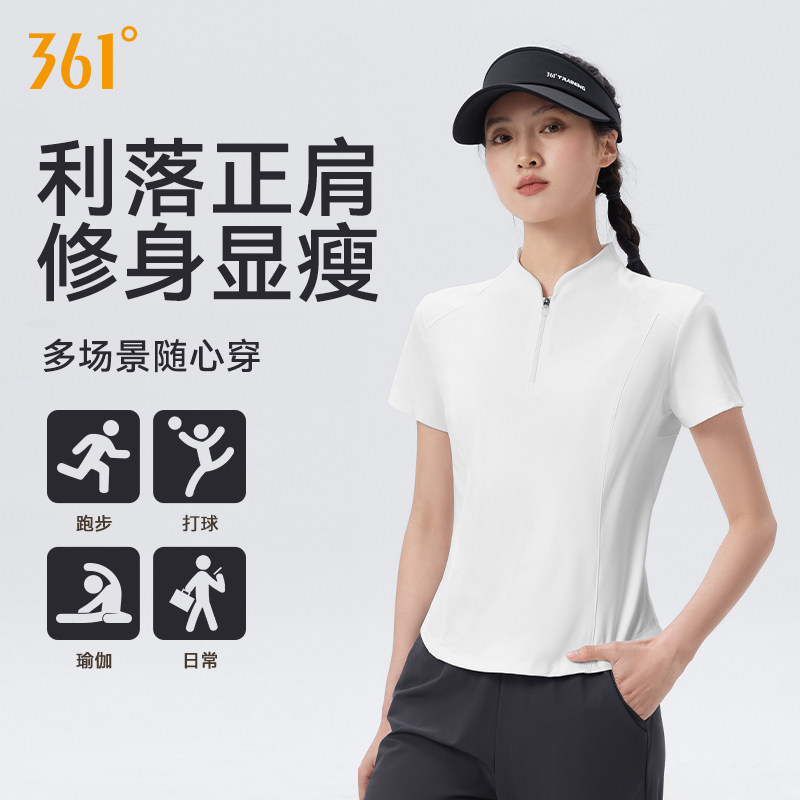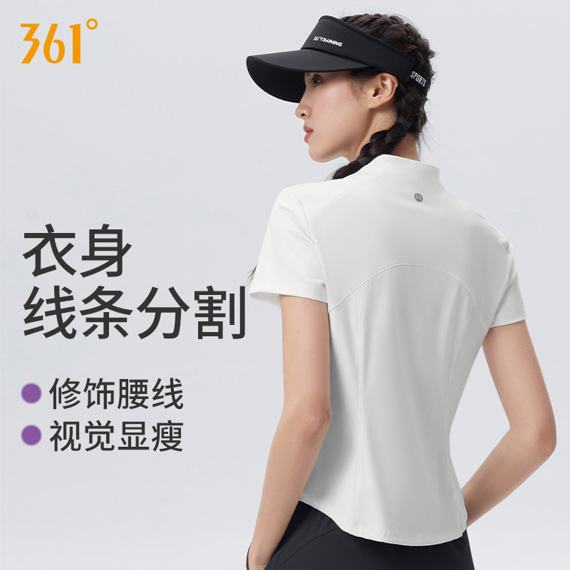 跑步羽毛球健身服瑜伽服 白色修身 361运动上衣女半拉链短袖 t恤夏季