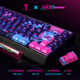 泰坦国度双城之战金克丝键帽黑粉pbt热升华核动力侧透适配wooting