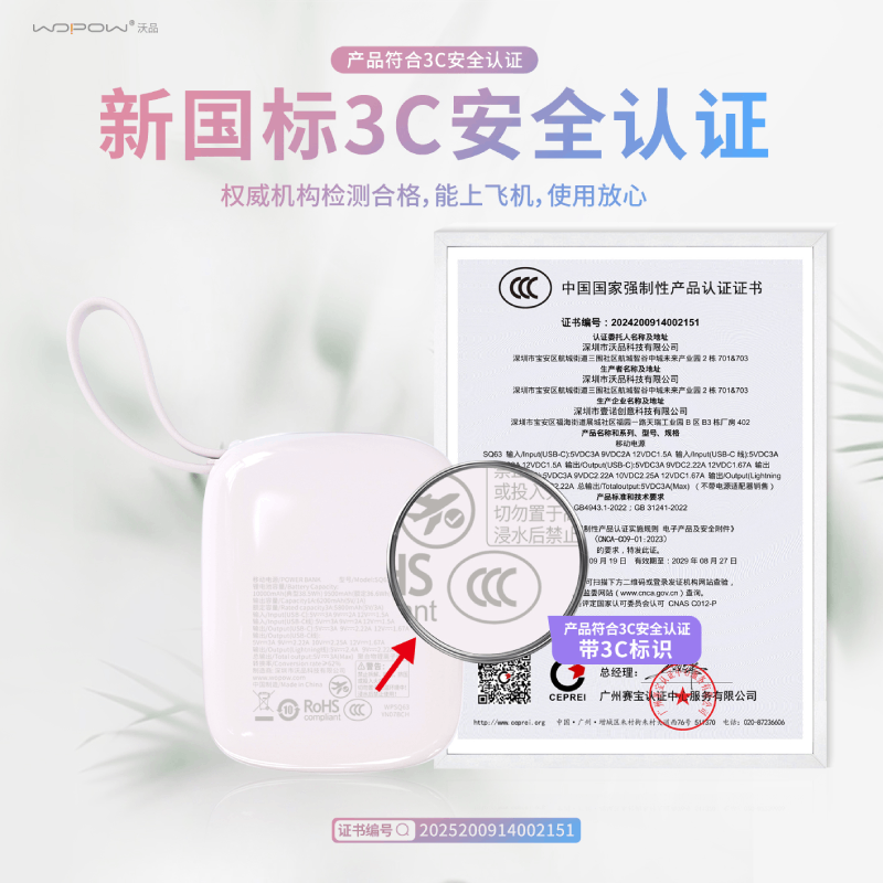 WOPOW沃品充电宝小巧便携自带线大容量快充超薄小彩蛋 3c认证