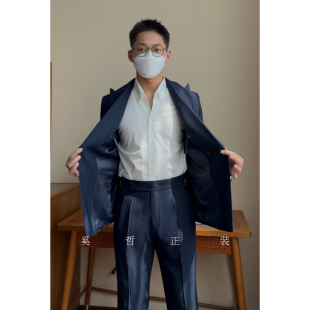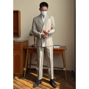 925 双排扣两粒扣暗人字纹休闲两件套西服套装 春季 意式