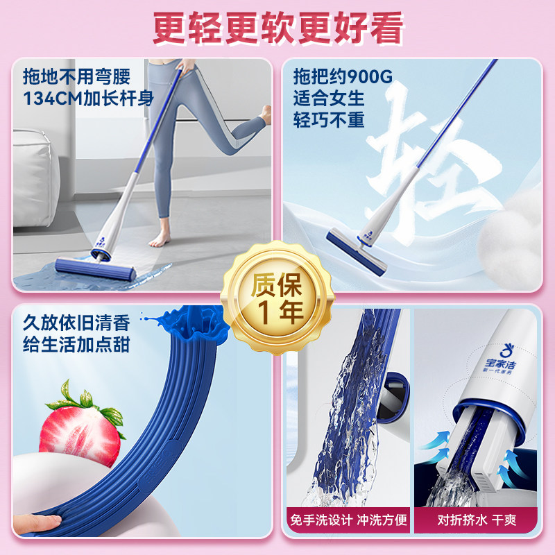 杨幂同款 宝家洁吸水平板拖把家用免手洗胶棉浴室卫生间干湿两用