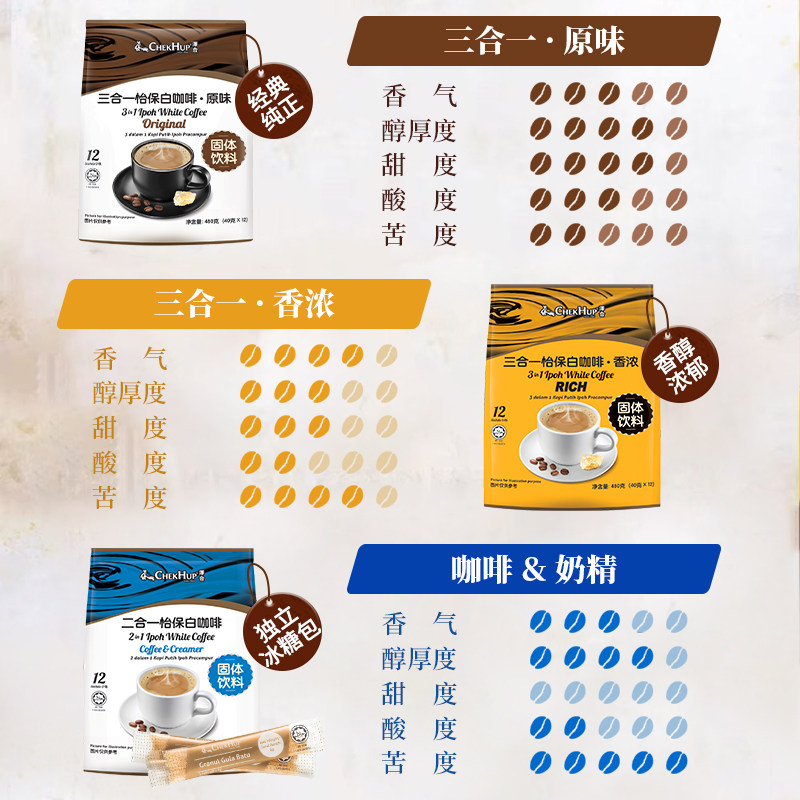 马来西亚进口泽合怡保白咖啡RICH三合一香浓原味速溶咖啡粉12条装