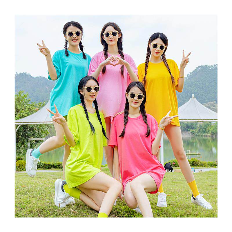 新款 夏季 闺蜜姐妹装 多巴胺糖果彩色定制t恤女夏纯棉宽松圆领短袖