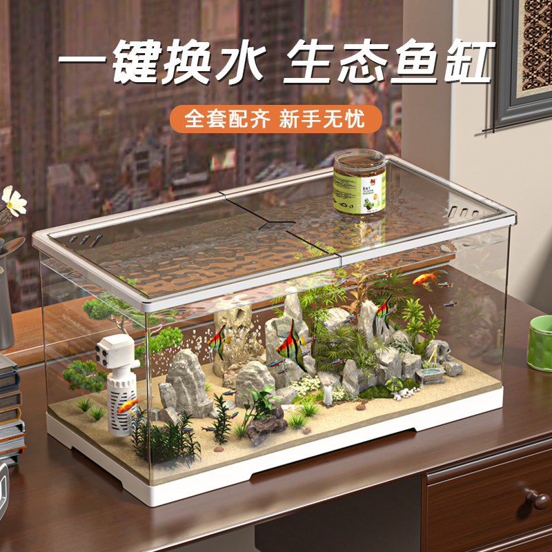 鱼缸客厅小型2026新款 家庭带盖免换水造景生态缸8k防爆防摔乌龟缸