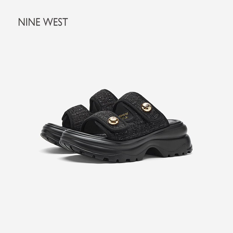 女2025年小香风花呢织物凉拖鞋 玖熙厚底拖鞋 女 West 奥莱专供Nine