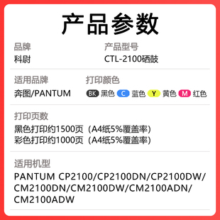 2100硒鼓CP2100DN ADW彩色碳粉墨粉盒PANTUM DW打印机粉盒CM2100DN ADN CP2100D墨盒 科尉适用奔图CTL