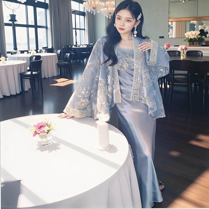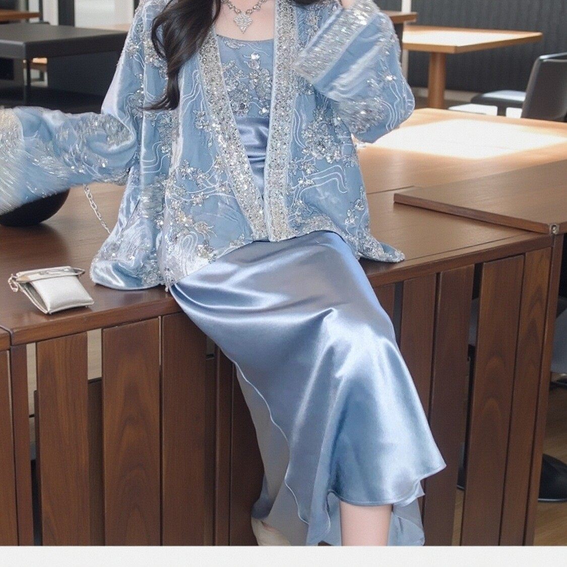 真丝新中式 刺绣重工丝绒套装 外套女春季 时尚 新款 MOSS梵月清梦