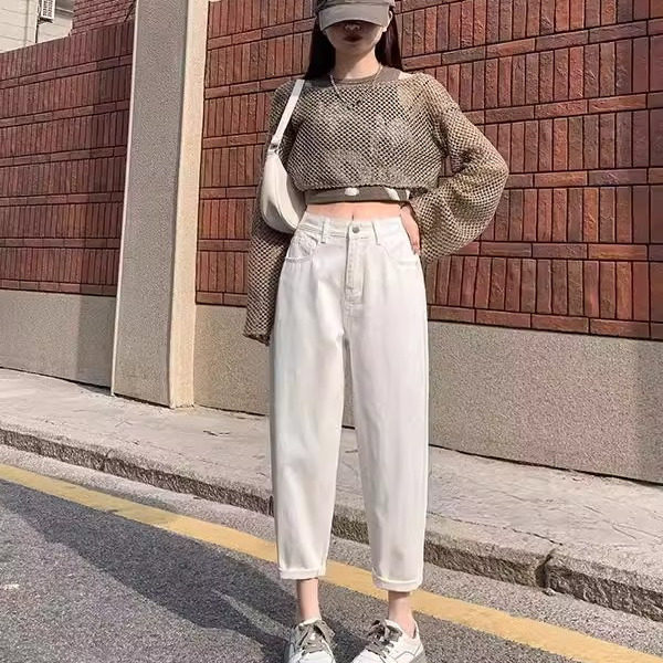 九分小个子宽松梨形显瘦老爹裤 薄款 女春夏2025新款 白色哈伦牛仔裤