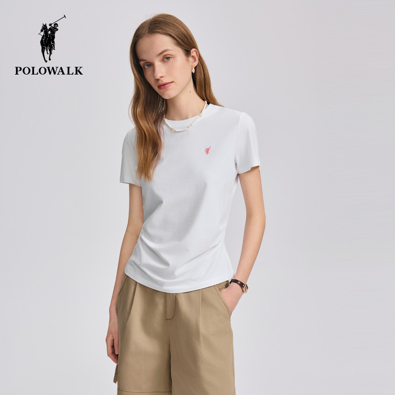 圆T恤女式 修身 夏季 休闲百搭打底衫 圆领上衣 新品 POLOWALK短袖