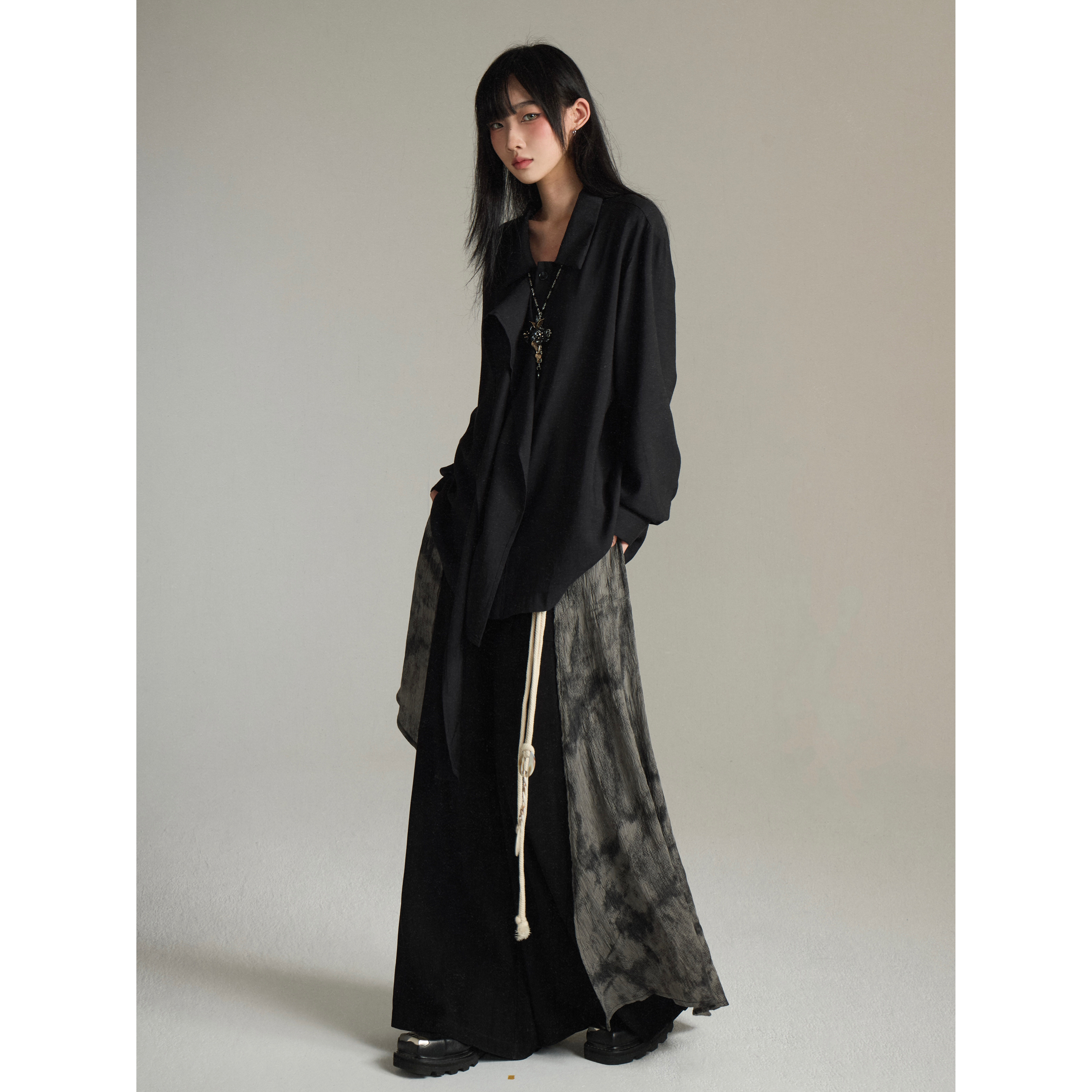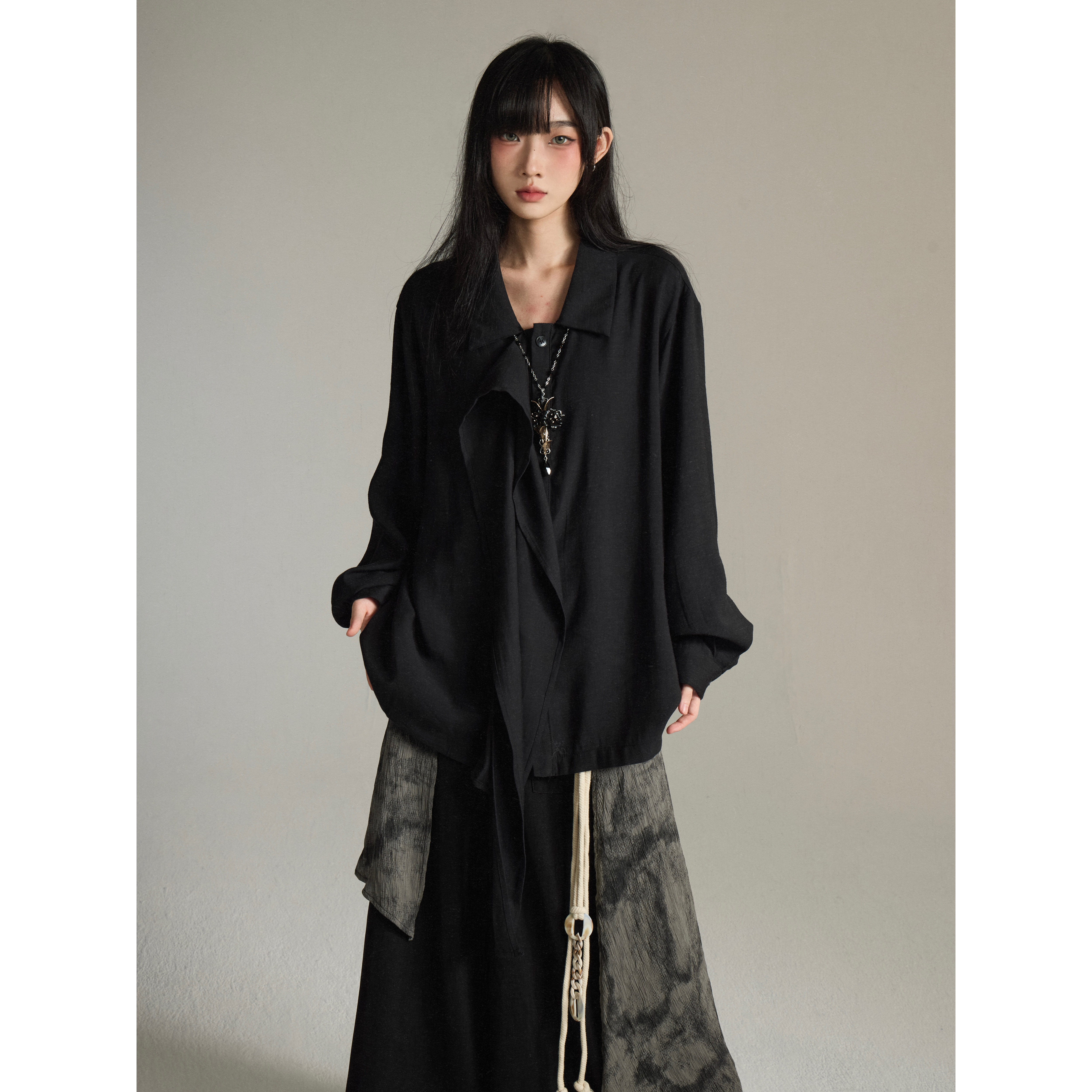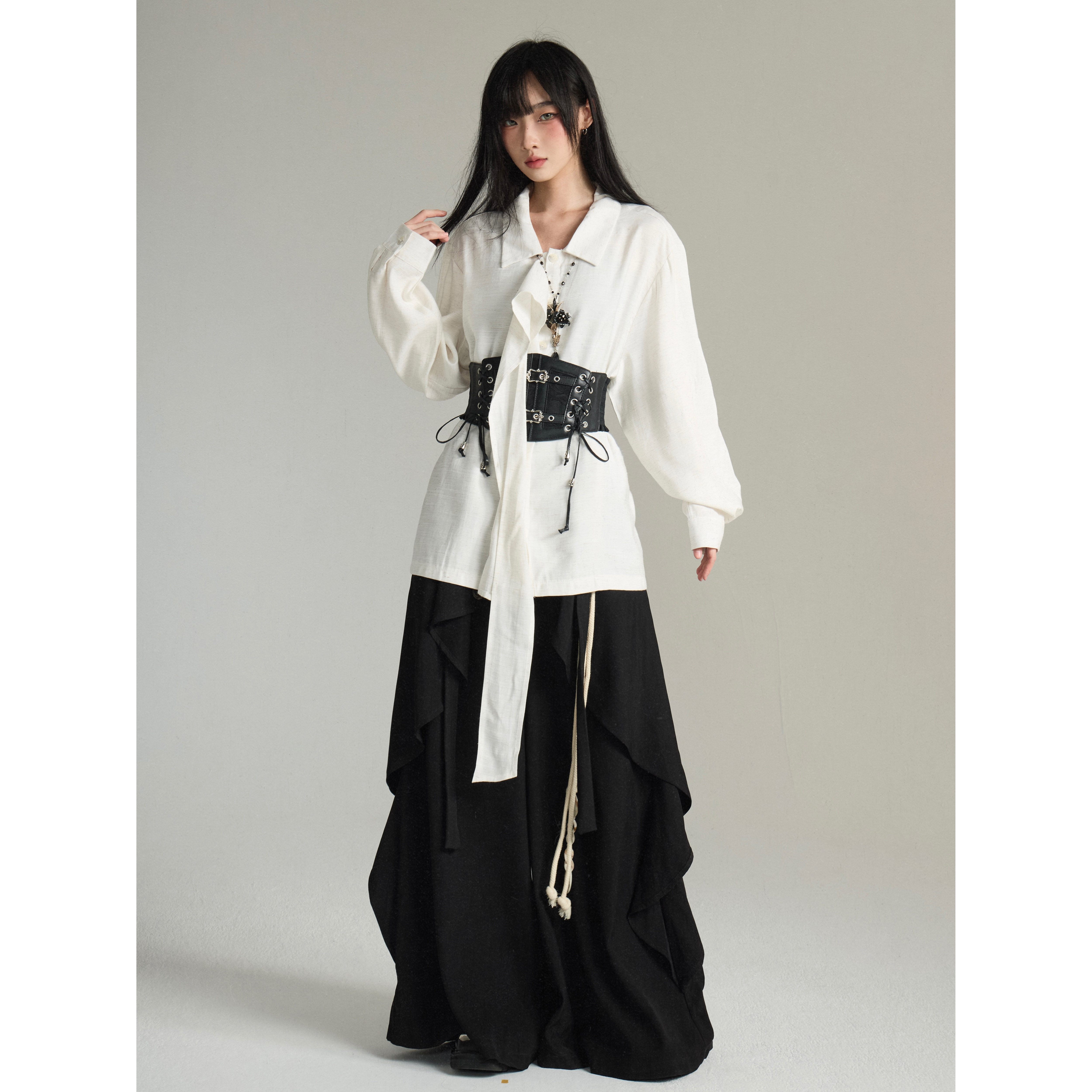 设计感小众中性衬衣 法式 FG721 复古高级感Lemaire风飘带围巾衬衫