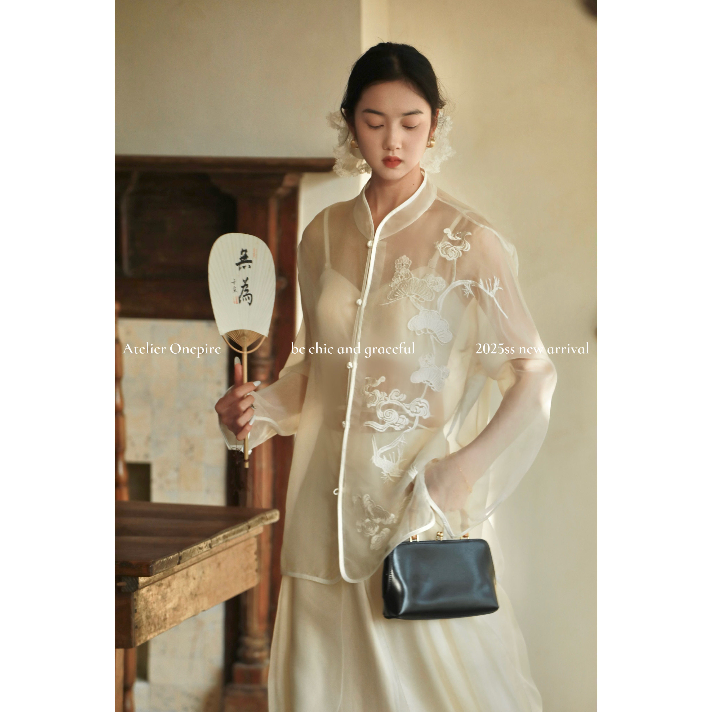 云上别枝·祥云松柏10w针刺绣新中式 Onepire 欧根纱衬衫 现货