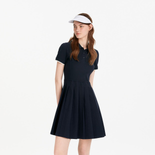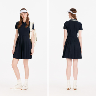 森马连衣裙女夏季 撞色polo领短裙字母休闲显瘦运动风学院风百褶裙