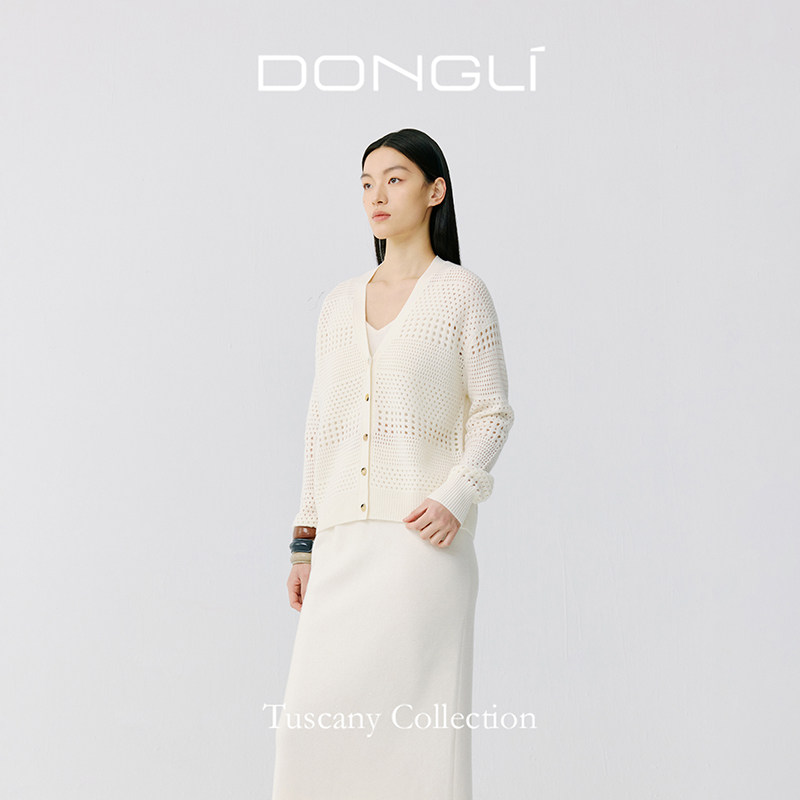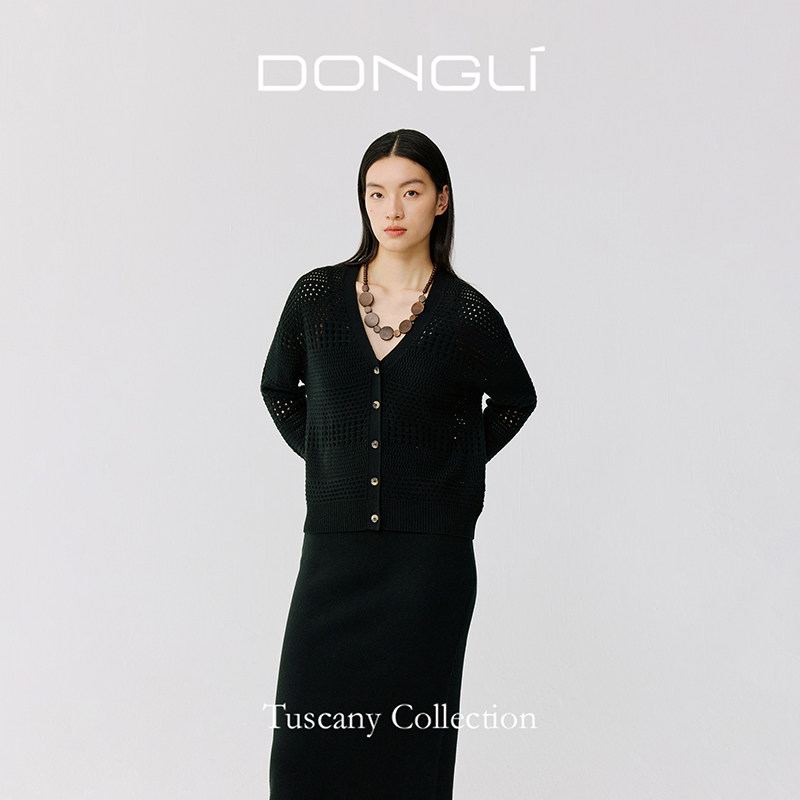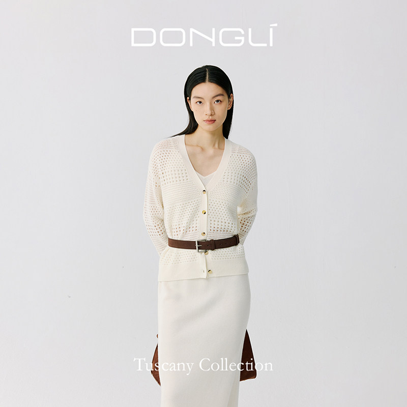大V领镂空挑孔牛角扣开衫 2026女士春夏季 5034 织夏 东黎托斯卡纳