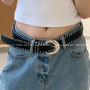 ins博主同款 编织绳缠绕腰带合金扣皮革pu皮带简约高级感配饰带女