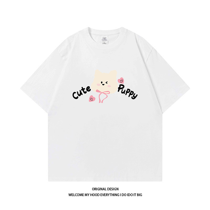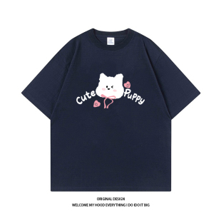 宽松百搭情侣同款 CHRY STUDIO韩系ins学院风卡通小猫字母印花短袖