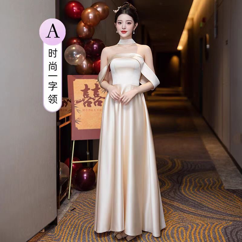 出租伴娘服租赁缎面服2025新款 复古姐妹团裙高级礼服小众平时可穿