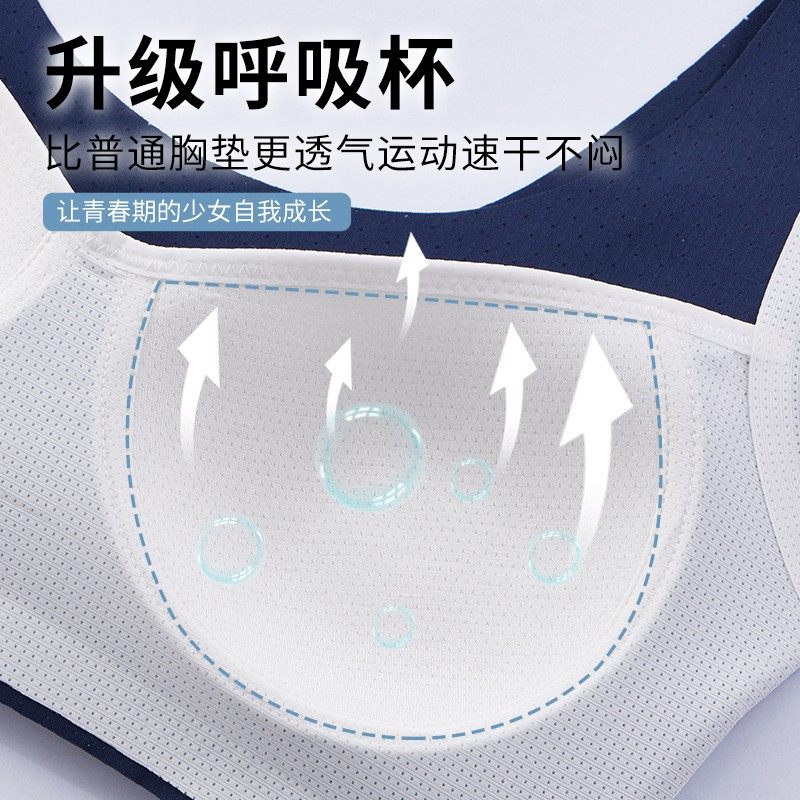 婷美发育期少女文胸青春期无痕内衣防震9 16岁初高中生运动小背心