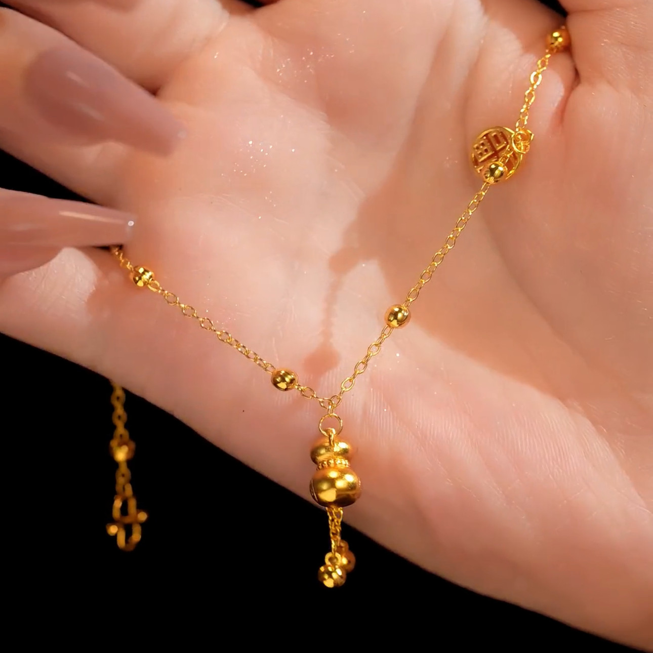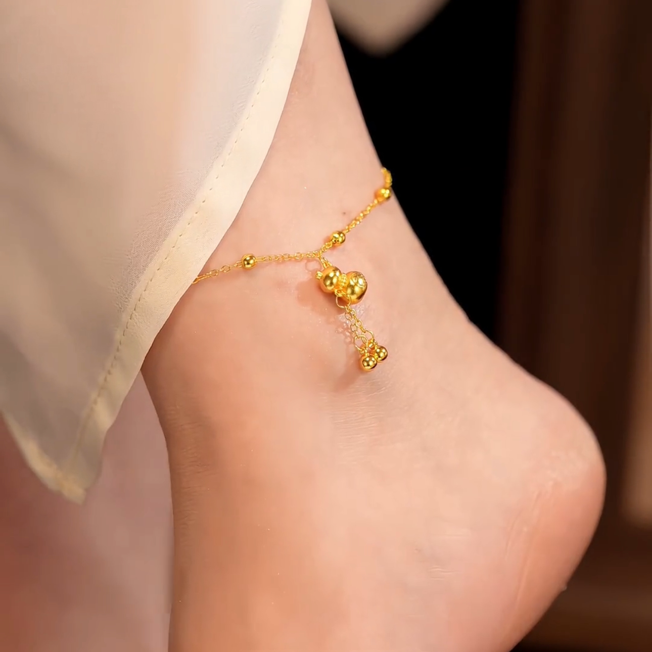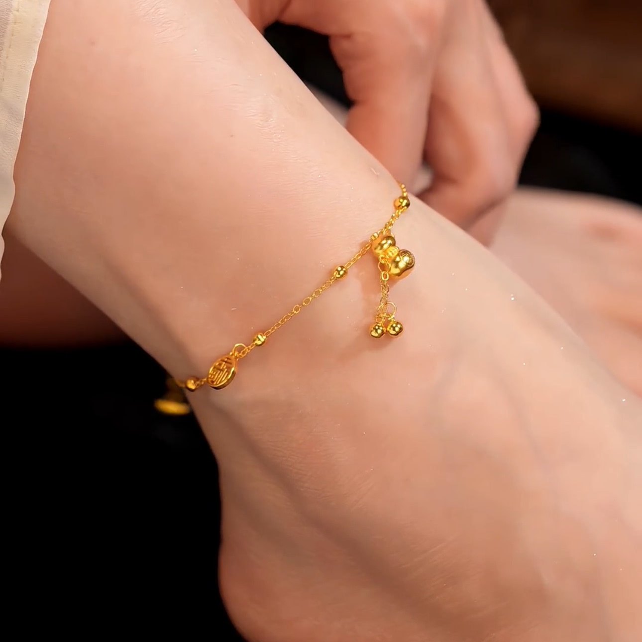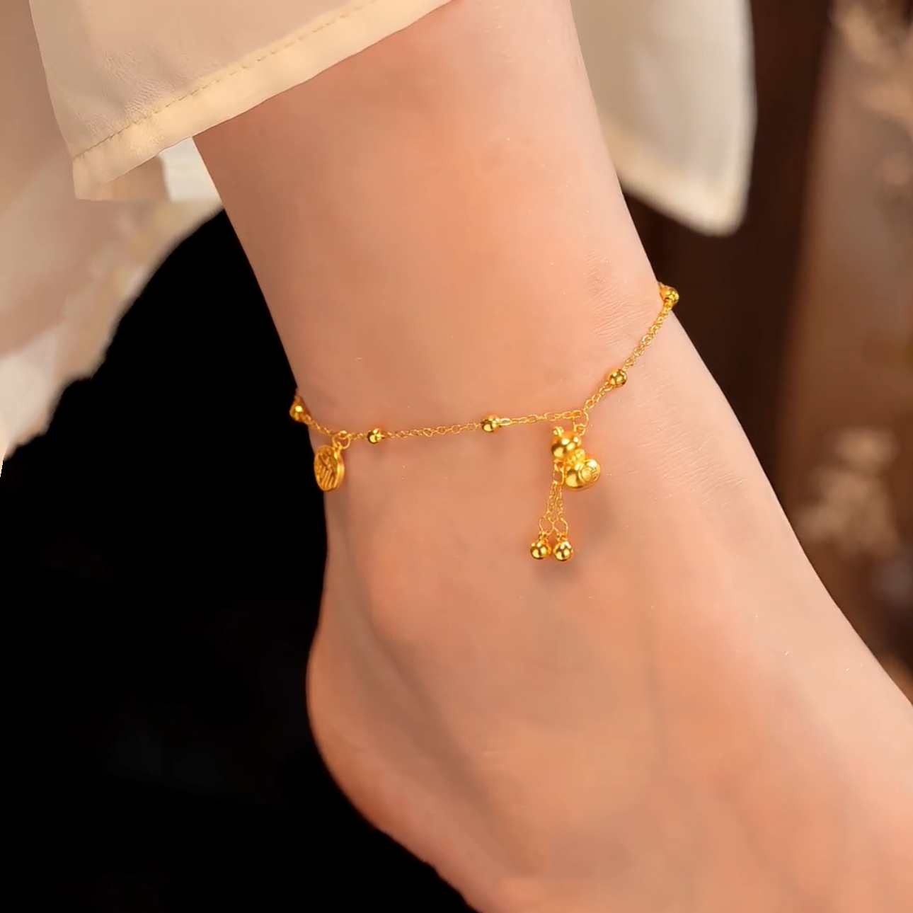 2025新款 潮钛钢福字葫芦流苏脚链女转运性感高级感女生足链脚踝链