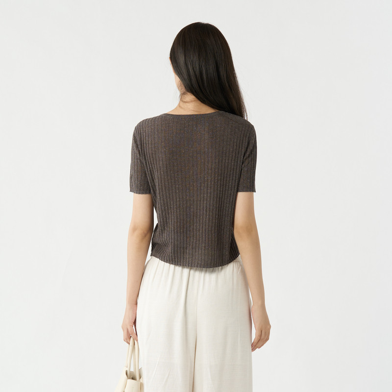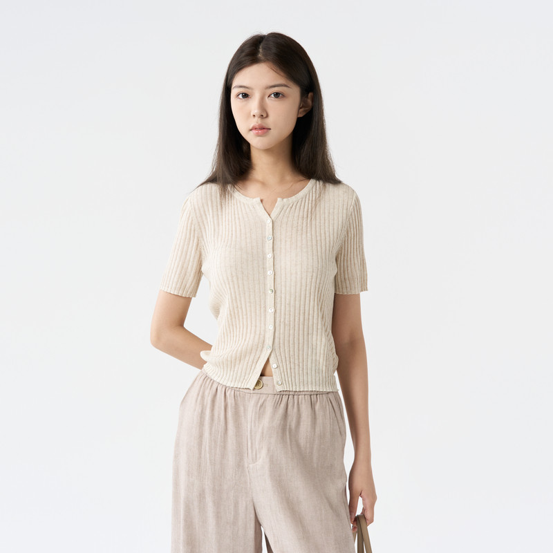 女装 小衫 夏季 文艺短款 XXAB10633 新款 西町村屋简约老钱风亚麻开衫