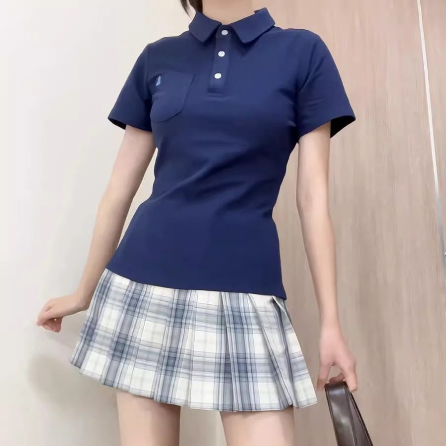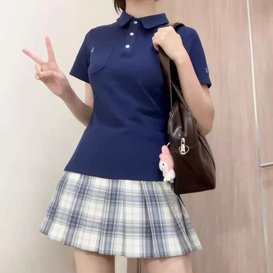 T恤女刺绣甜美上衣女夏 原创日系校供感短袖 收腰polo衫 jk制服正版