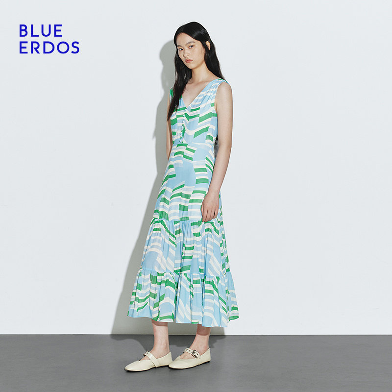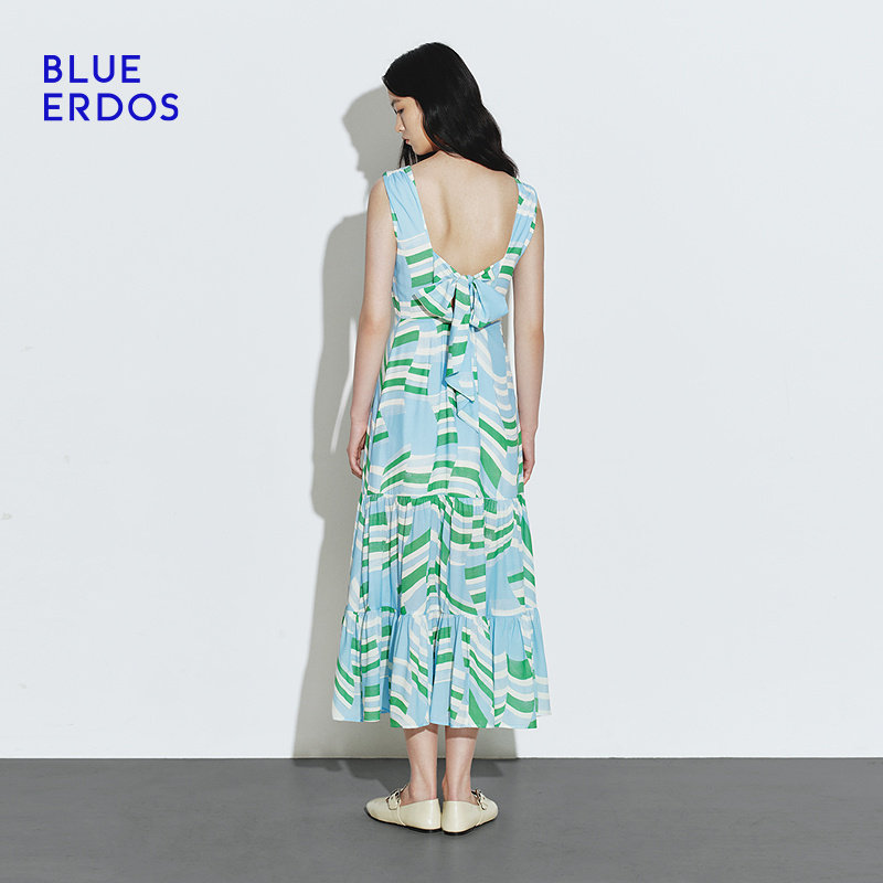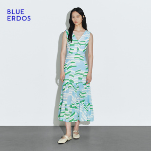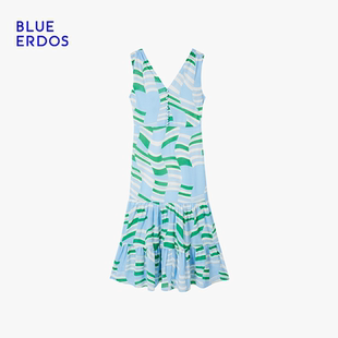 度假风A字拼色印花无袖 春季 背心连衣裙 ERDOS BLUE